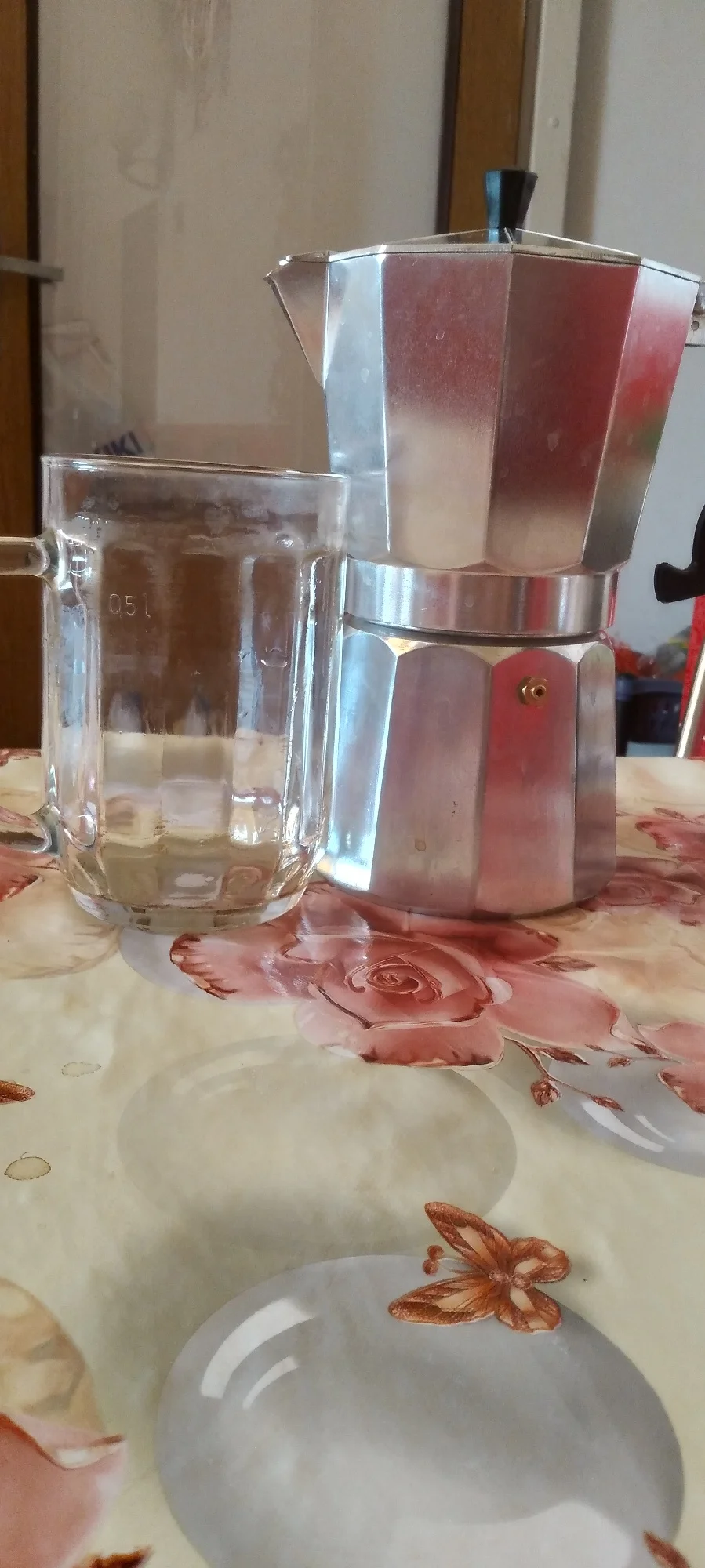 Заказывал чайник на 600мл. Видимо это китайские 600мл. на фото пивная кружка на 0,5л. Работает как надо главное сильно затянуть середину, пласмасовая ручка доверия не вызывает но пока держит. Готовый кофе где-то 300-350мл в конце получается.Ivneev Z. 23 июня 2024