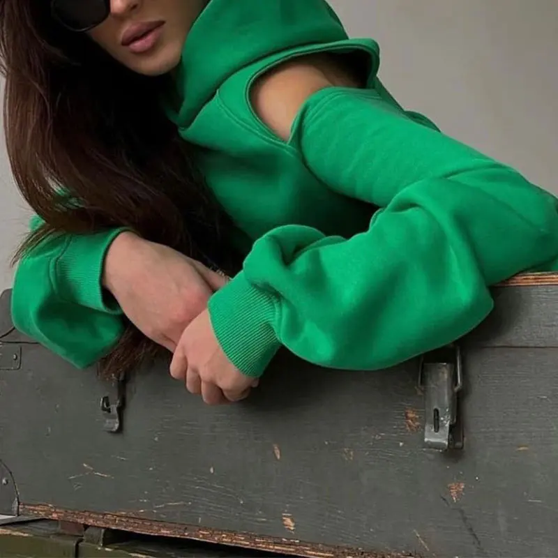 Женский спортивный костюм из 2 предметов, Повседневная Толстовка с капюшоном с вырезами, женский брючный костюм, эластичные спортивные штаны на талии, 2023