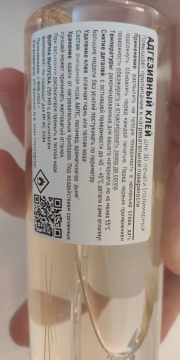отличный адгезив, около месяца использую, все липнет. Самодельным до этого пользовался и стали отрываться поддержки, длинные детали отрывало по углам, оказалось что дело в адгезиве, с этим проблем нетKonstantin D. 16 августа 2024
