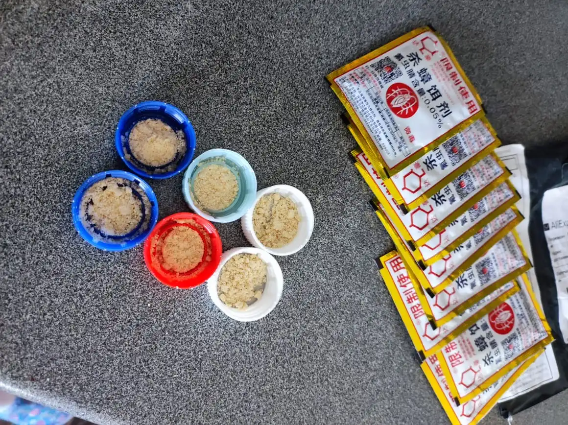 Заказываю не раз такую отраву. Одного пакетика хватает на 5 крышек от полторашек. Много лучше не насыпать в крышку, всё равно так много сразу не сожрут и пропадёт отрава быстро, поэтому лучше тонким слоем насыпать. Сражает на повал этих квартирантов.