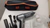Я получил товар через две недели в Греции. Поставляется с выбранными аксессуарами и руководством пользователя на английском языке. Я положил его на зарядку на 3 часа по мере необходимости, но прежде чем я начал его, он хорошо работает для небольших мест или автомобиля. Спасибо.