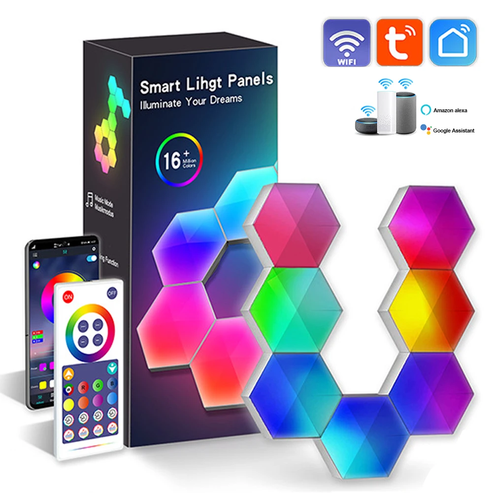 Умные светильник вые панели с Wi-Fi и USB, светодиодный шестиугольный ночник «сделай сам» для создания ритма музыки и окружающей атмосферы, декоративные настенные лампы RGB