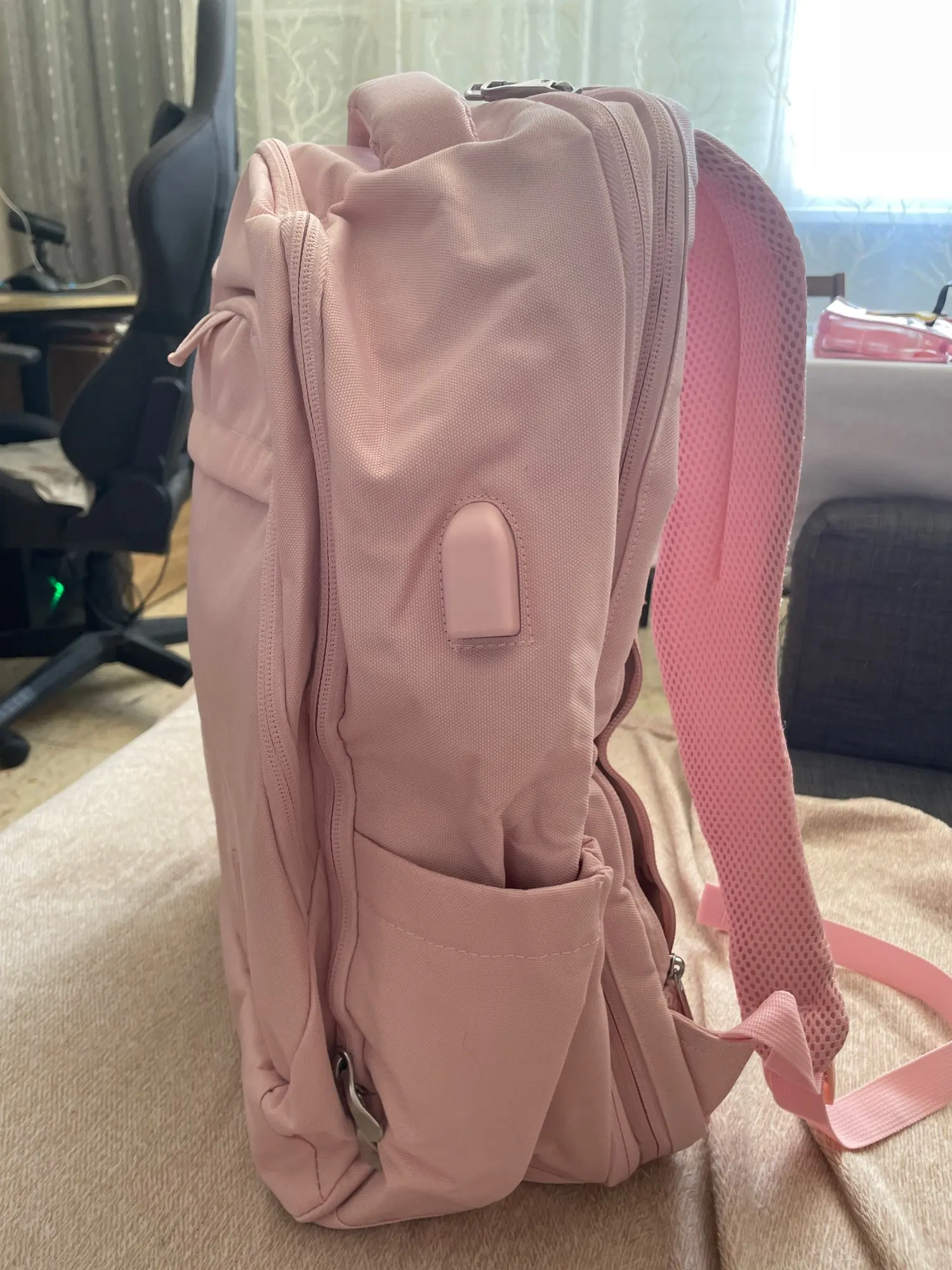 Он очень просторный, и ткань очень хорошая, хотя я собираюсь занять его для этого возвращения в школу, у меня также есть однолитровый термос сбоку, поставляется с кабелем для подключения аккумулятора и зарядки мобильного телефона, И крышки компартментализации ноутбука, если их можно закрыть как безопасные, она потрясающе, очень довольна