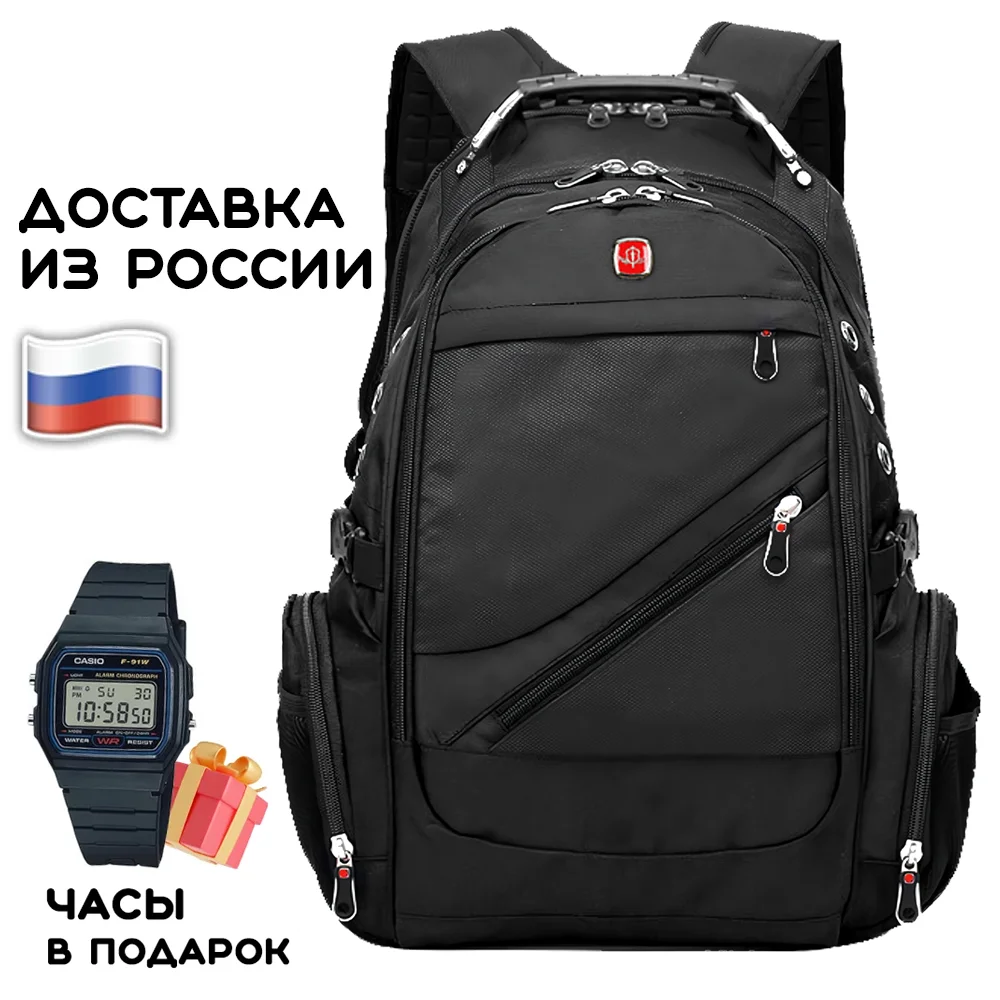Швейцарский мужской рюкзак 8810 USB 35 л. с чехлом от дождя + Армейские часы в подарок. Мужской рюкзак, городской, школьный