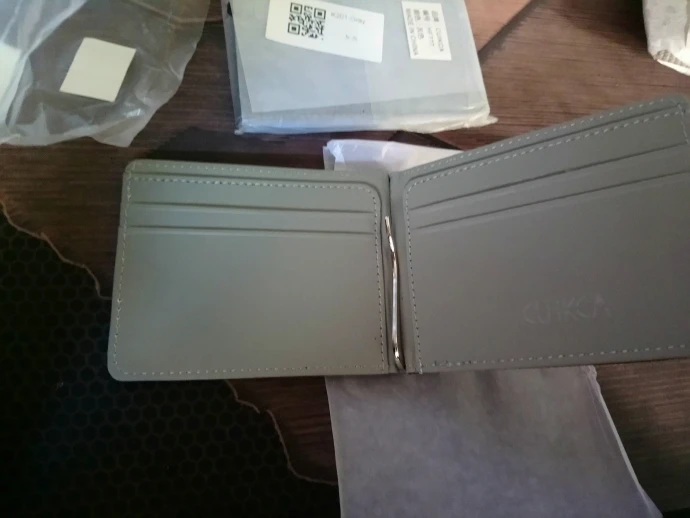Визуально и на ощупь - очень приятное качество. Отдел для карт - немного тянется, что позволяет его наполнять. Если у вас много денег - к сожалению, без прикладывания сил, кошелек сам не закрывается :с В общем, для не большой налички , сойдёт .