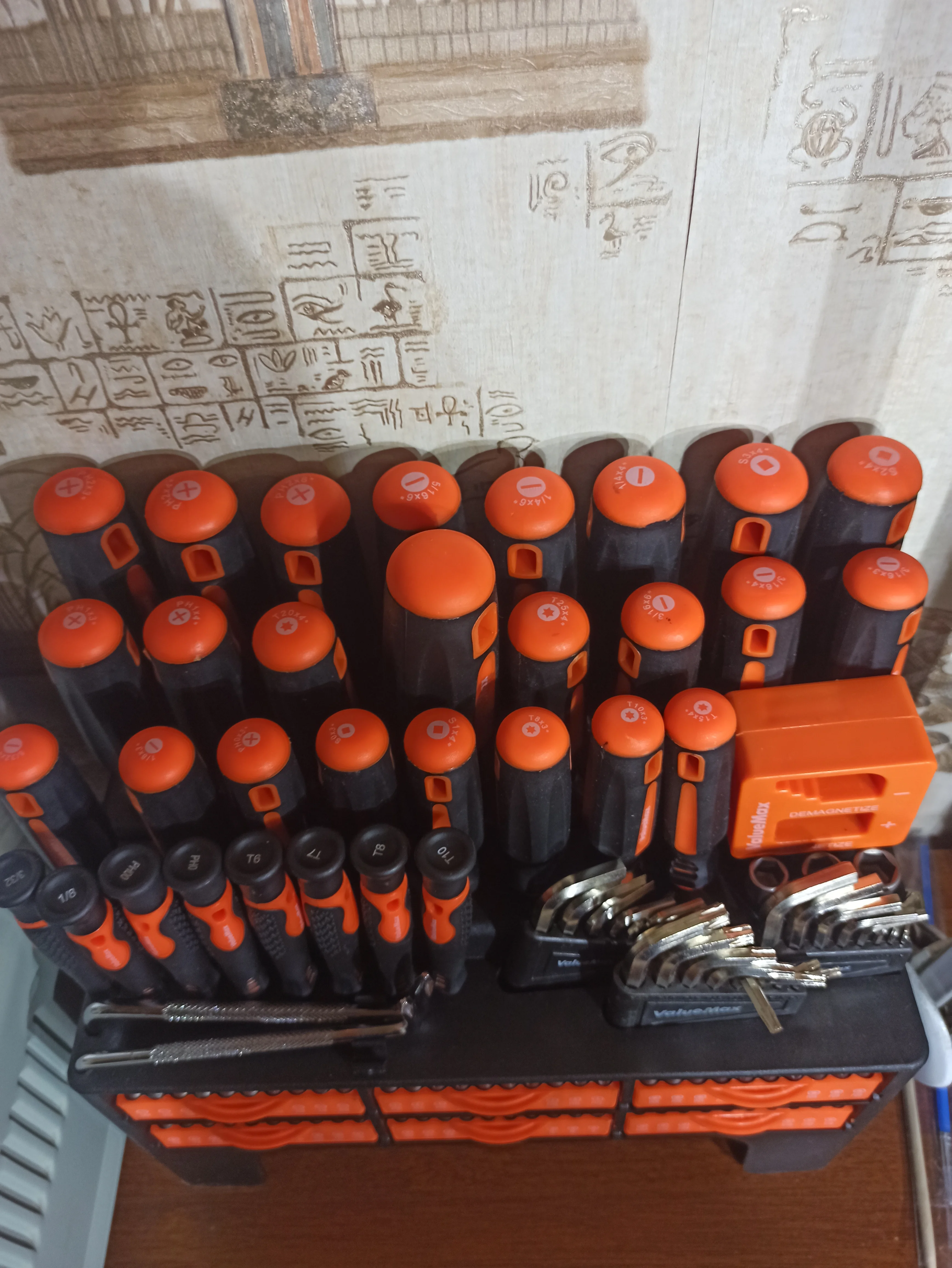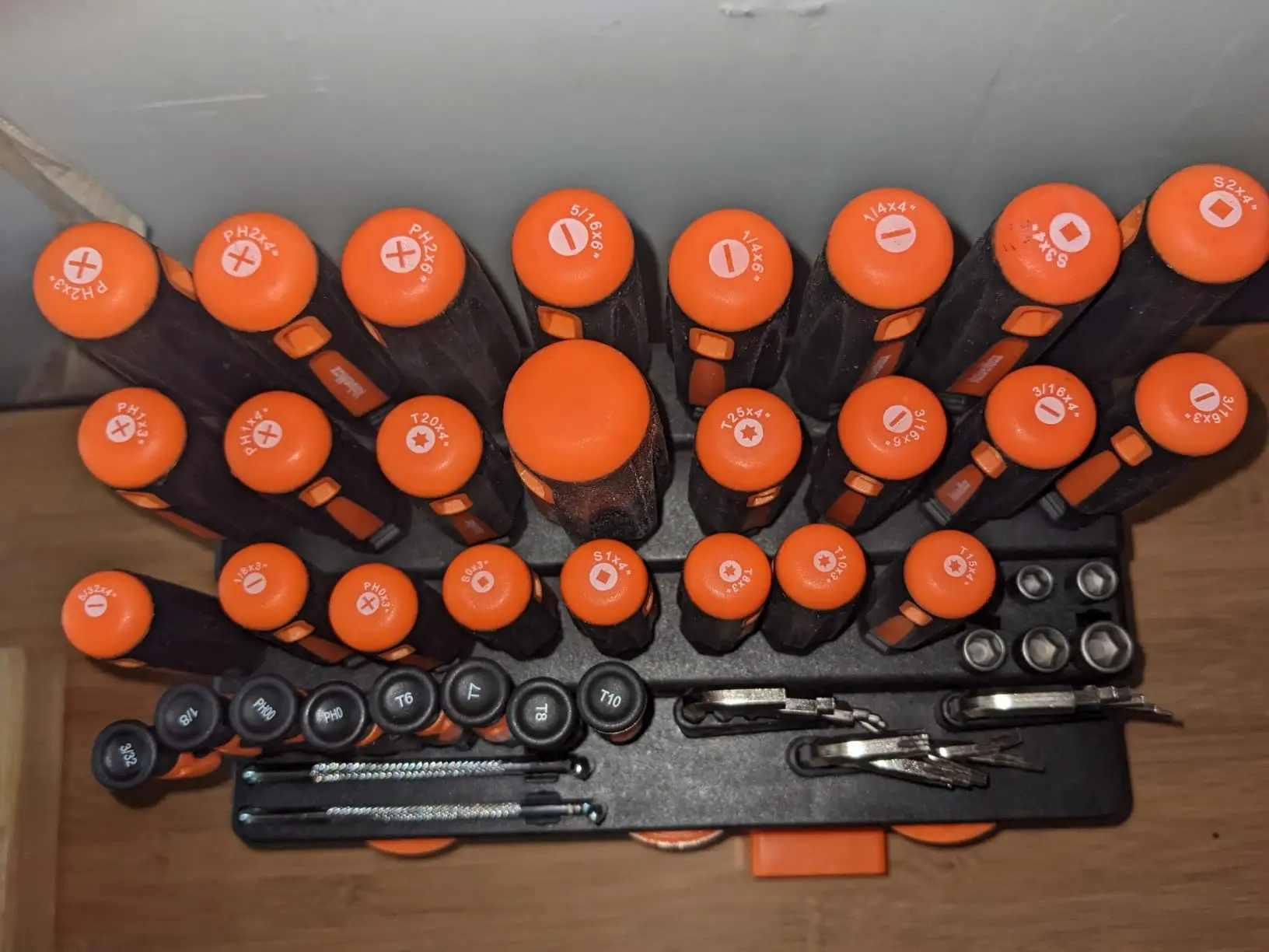 Довольно хороший набор, у всех есть магнитный наконечник, вы можете поместить это на верхушке рабочей скамьи стола или, как я установил его на шпильке, имеет тот вариант, который был прохладным.Min K. 18 января 2023