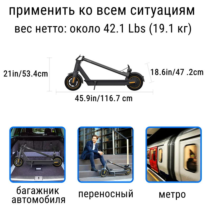 Очень быстрая доставка до Саратова (10дней). Брал в подарок жене пришёл точно в ее день рождения, Хотя обещан был продавцом на 5 дней позднее. Искал такой, чтоб "муха не сидела". У нас в городе предлагались только варианты с витрины, 2021 г.в. и за 56К. Купил тут за 48К, абсолютно новый чистый (девственный) май 2022г.в. Покупкой очень доволен. В первый же вечер покатались по набережной (заряда из коробки было 55%). Инструкция только на английском и китайском. В приложении есть на русском, но перевод дословный. Долго искали как переключить "рычагом"(согласно инструкции) режим катания с "ЭКО" на "D" или "S". В итоге случайно выяснили, что имелась вы виду двойное нажатие кнопки "вкл/выкл". Но это единственное, что не было понятно интуитивно. С китайским смартфоном синхронизировался моментально, с Самсунгом примерно с 5-го нажатия. Но это и помогло выяснить способ переключения режимов катания. В общем спасибо продавцу за скорость, идеальную сохранность товара, лучшую цену, а главное неожиданно спасённый д.р.!!!