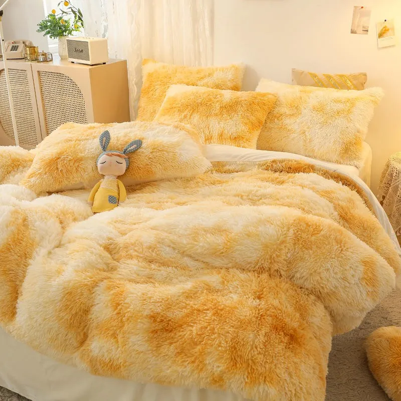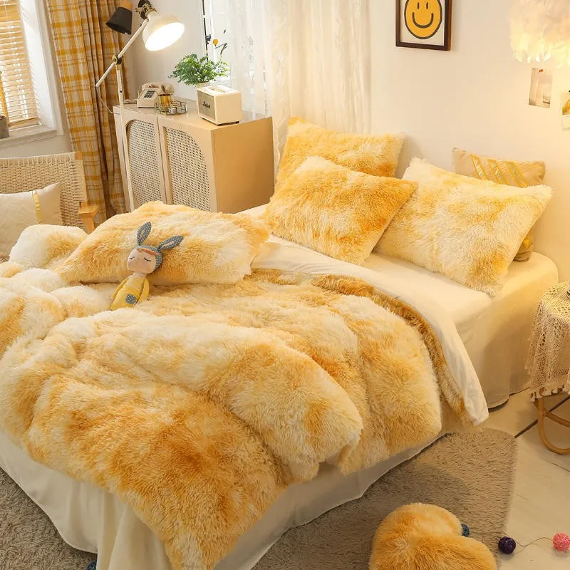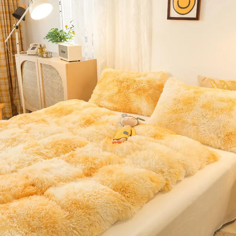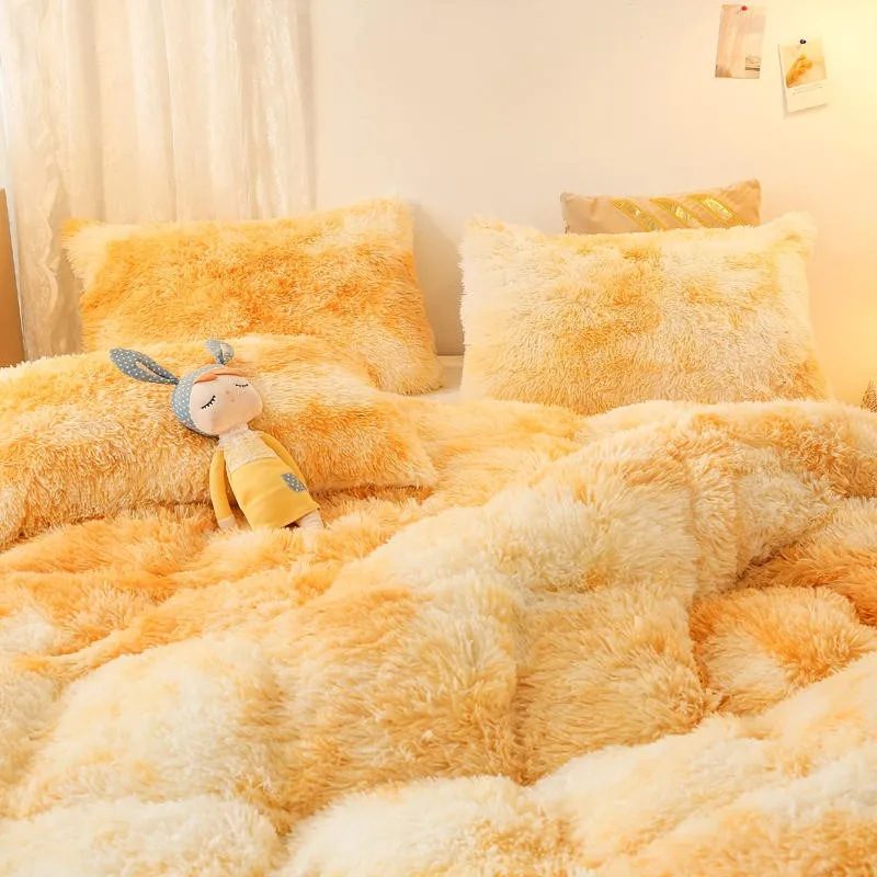 Градиентный цвет, плюшевый лохматый пододеяльник, комплекты постельного белья, 4 шт., двойная королева, король (1 пододеяльник из искусственного меха + 1 простыня + 2 наволочки)