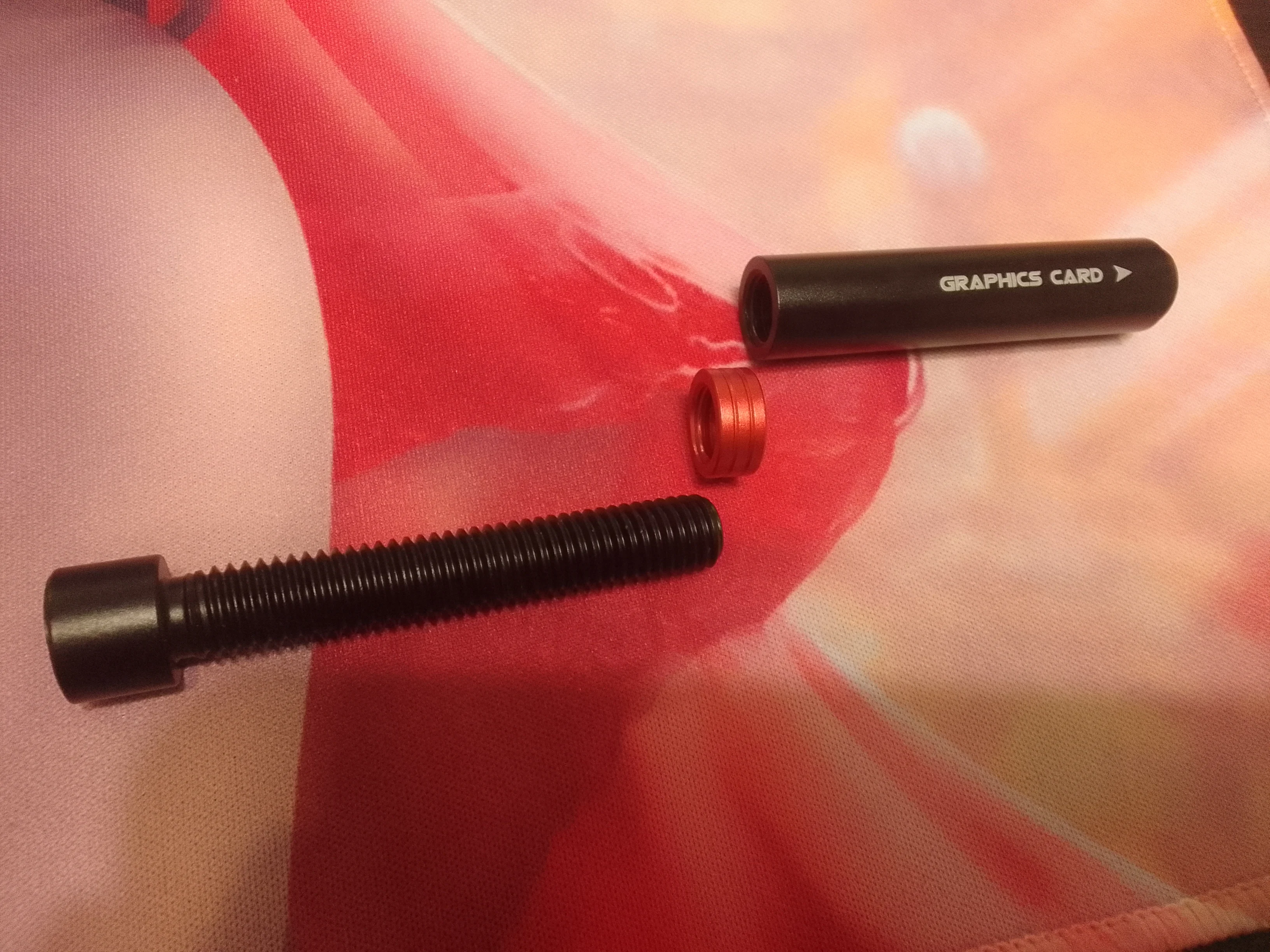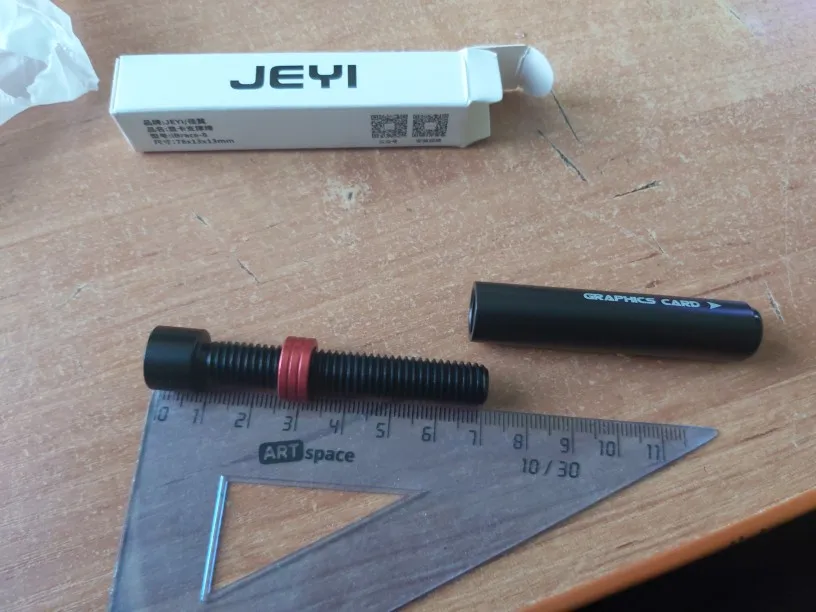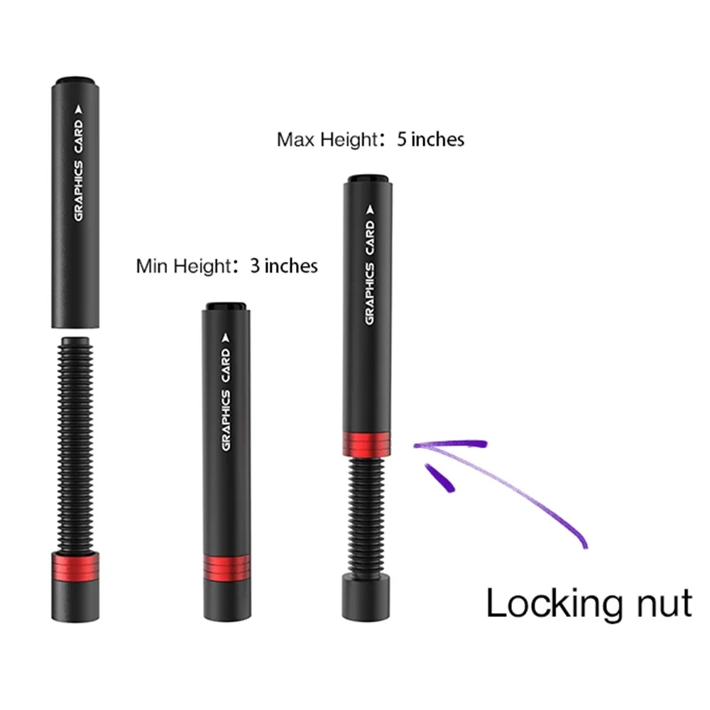 Качество хорошее, косяков нет, резьба хорошая. Есть небольшой люфт, но думаю так и задумано, когда подпирал видеокарту это понял) Есть возможность убрать красную вставку, если не влезет. Сверху резиновая "подушечка", снизу магнит с дополнительной липкой фиксацией.qwerty y. 22 сентября 2022