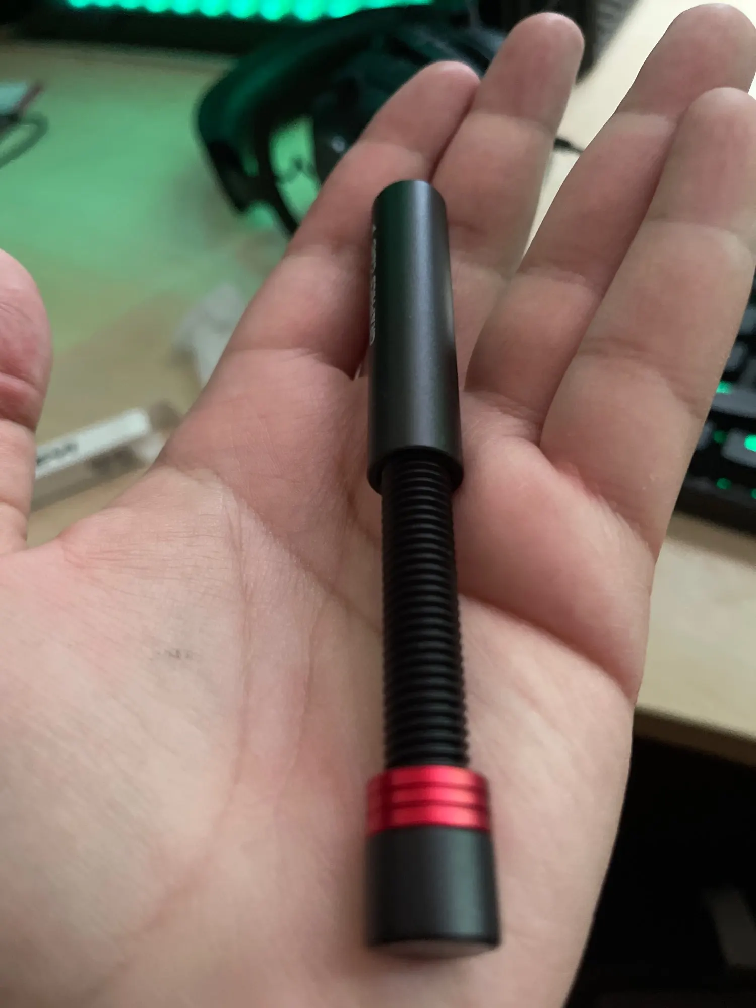 Годный болт. Слегка люфтит, хорошим назвать не могу, но за пару соток более, чем "норм". Снизу магнит и немного невнятного клея, сверху резиновая прослойка, красную шайбу можно снять, если она не подходит по цветовой схеме или просто не нравится.