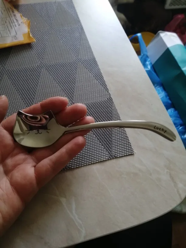 Посылка дошла почти за 4 недели. Ложки симпатичные, покупала в подарок. На фотографиях плохо получилось, бликует. Но рисунок выполнен хорошо. Мордочки котят приятные. Отличная ложка для высоких кружек, бокалов! Глубина ложечку небольшая, но вполне подходит, чтоб сахар насыпать, Да и десерт поесть. Мне понравились, рекомендую!