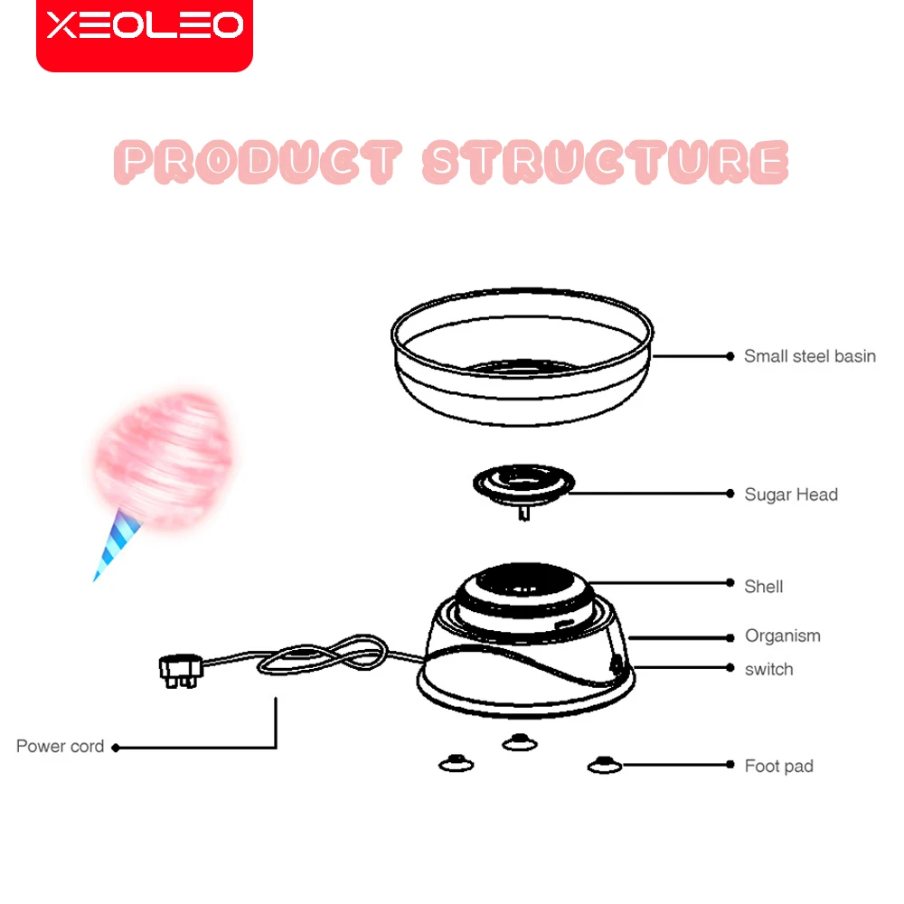 Аппарат XEOLEO для приготовления сладкой ваты, мини-аппарат для изготовления сладкой ваты для приготовления сладкой ваты, аппарат для переработки сладкой ваты для детей