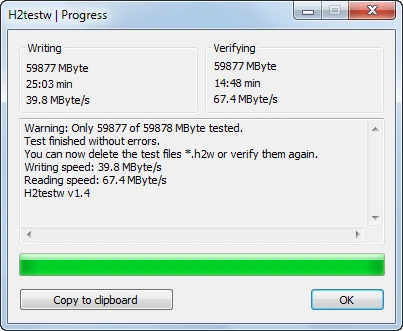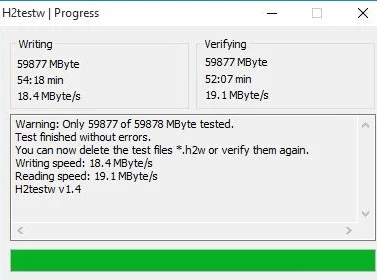 Настоящая карта памяти должна пройти H2testw без ошибок.