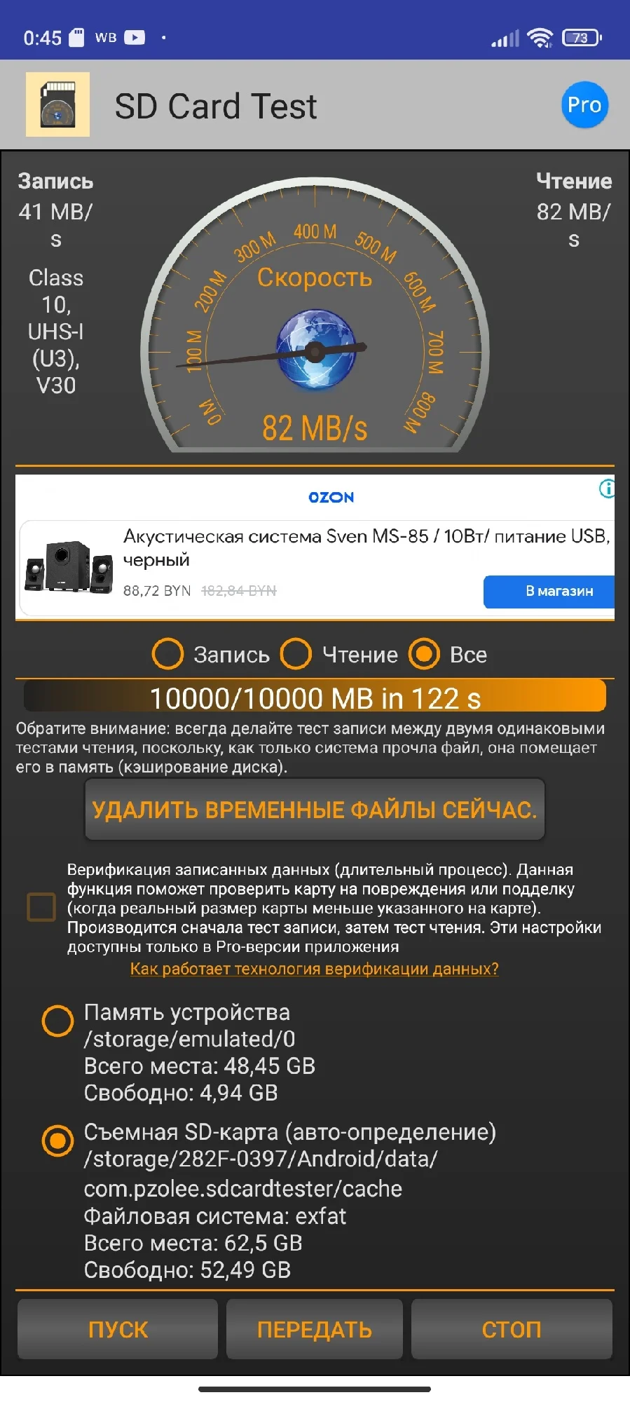 Шаги по проверке емкости и скорости карты памяти