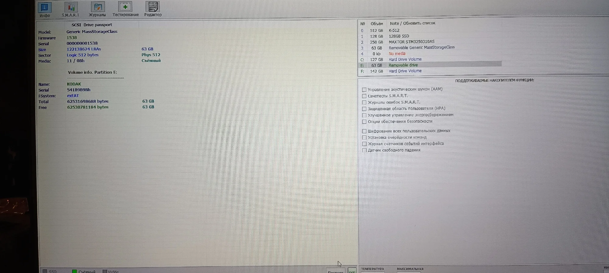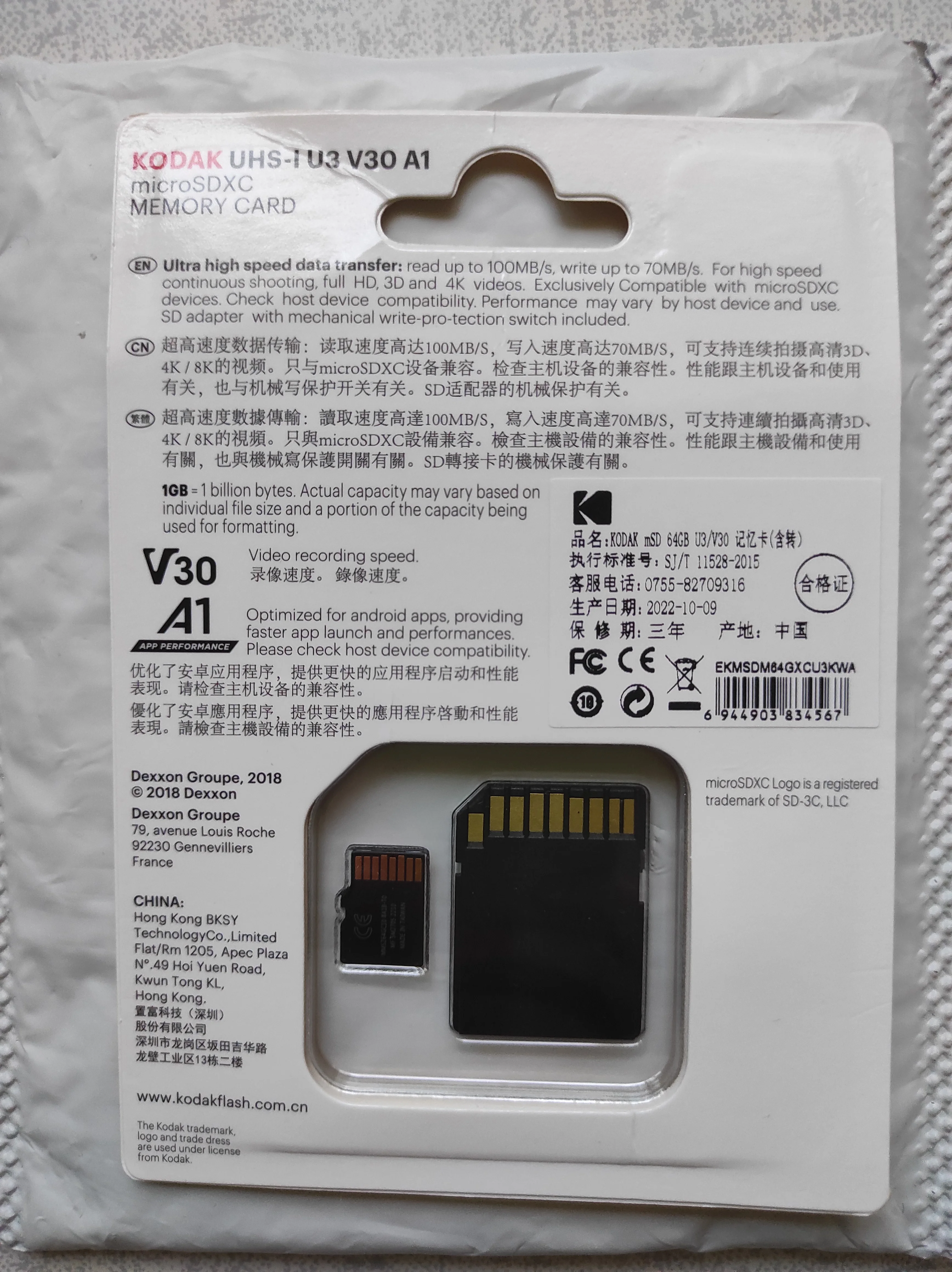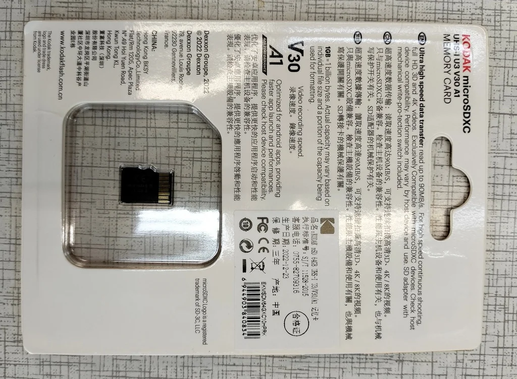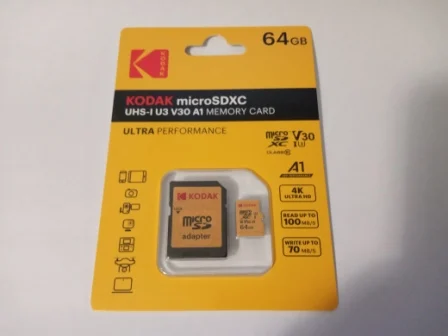 Уже не первая карта от KODAK. Доставка 23 дня. Файловая система exFaT. h2testw завершился без ошибок, объем в норме. На карте записано 2 файла (KODAK.ico и autorun.inf). Перед тестом h2testw их надо удалить или переместить. Скорости в тестах (см. фото) - CrystalDiskMark ~ Read 85 M\s, Write 45 MB\s ; H2test ~ 67 мб\с, 40 мб\с. Тестировал на старом ноутбуке под win 7. На хорошем железе будет быстрее. Картами памяти Кодак пользуюсь уже третий год. В основном это регистратор, экшн камеры, магнитола. Карта для резервного копирования рабочих файлов. Из одной сделал загрузочную флешку. Пока никаких проблем. В общем нормальные карты памяти. Рабочие лошадки за недорого. Видео с распаковкой и тестами карты на 64 Гб есть на Ютуб - youtu.be\GYBPCMxX6ZU . Там оно наглядней и подробней будет. Тут много не напишешь. Если был полезен не откажусь от лайка. Надеюсь кому-то помог с выбором карты памяти. Всем японского качества по китайским ценам! С Новым годом! Добра и мира!