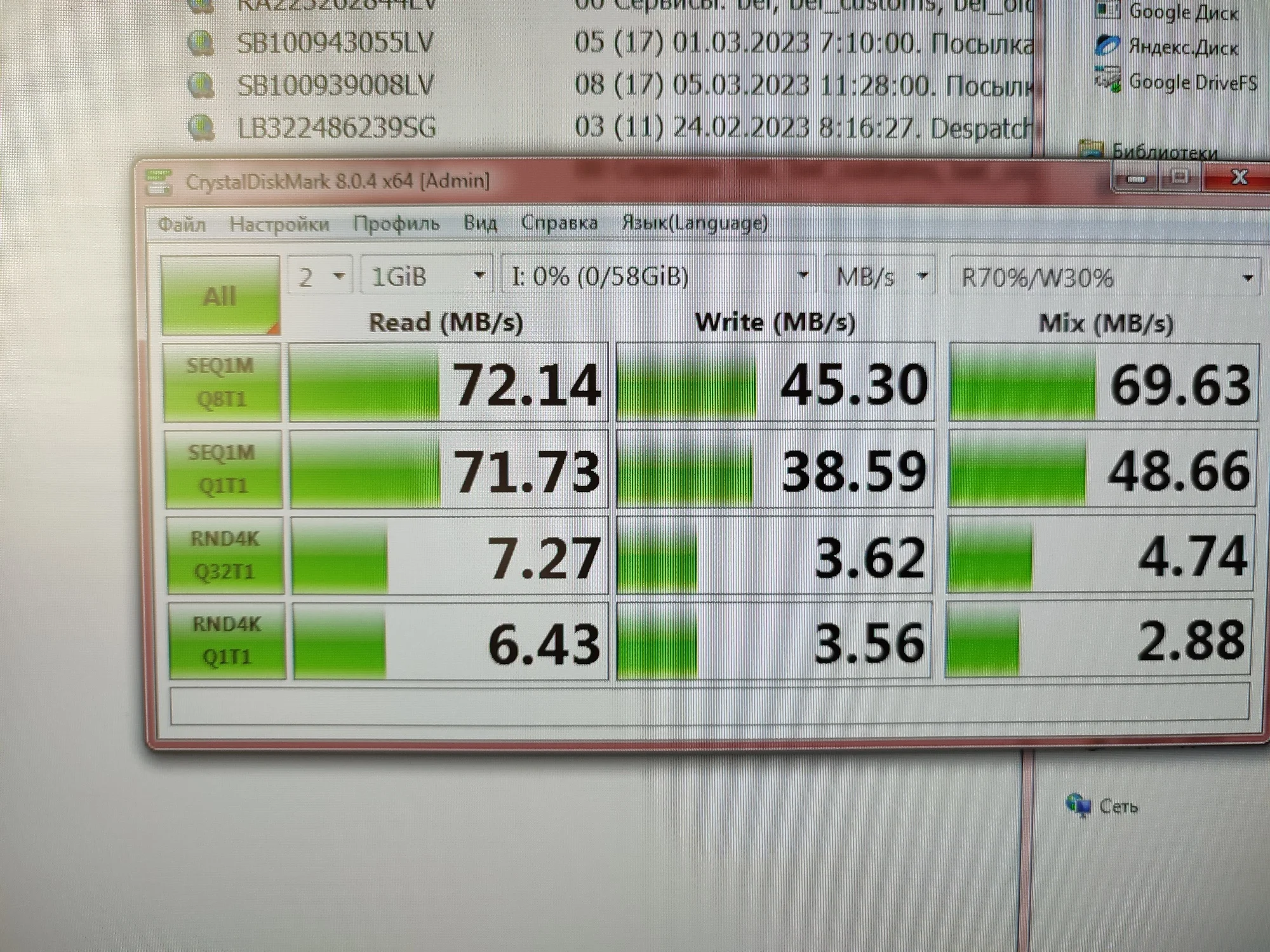 Продавец отправил через 4 дня после оплаты. В Минск посылка пришла за 19 дней. Комплект на фото,есть адаптер. Упакована в стандартный конверт с пупыркой. Объем соответствует, что подтверждает тест H2testw. Тесты в CrystalDiskMark и H2testw были сделаны через ноунейм переходник usb 2.0. Остальные два скрина сделаны в redmi note 9pro. За такой ценник скорость вменяемая. Посмотрим как долго прослужит.