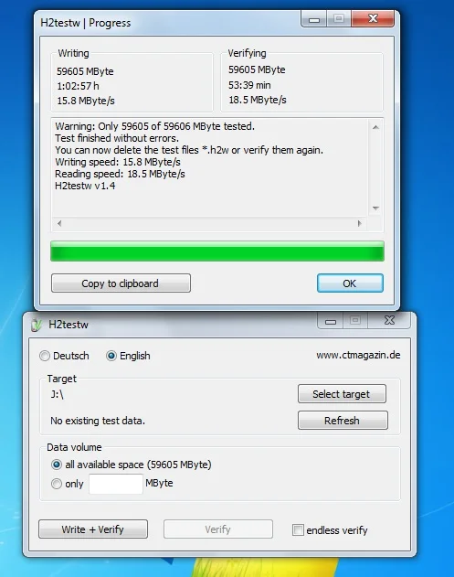(1). Используйте качественный кардридер USB 3.0 для проверки всех карт памяти с помощью H2testw на ПК.