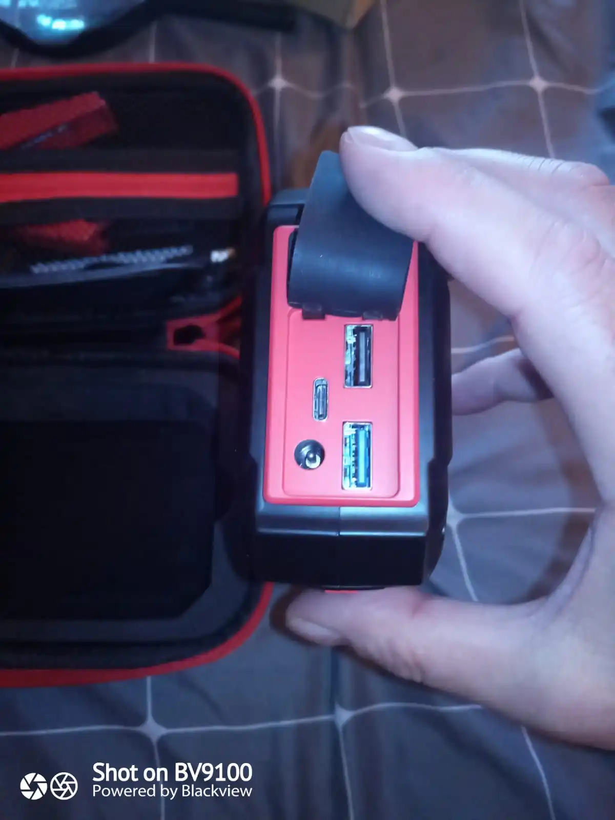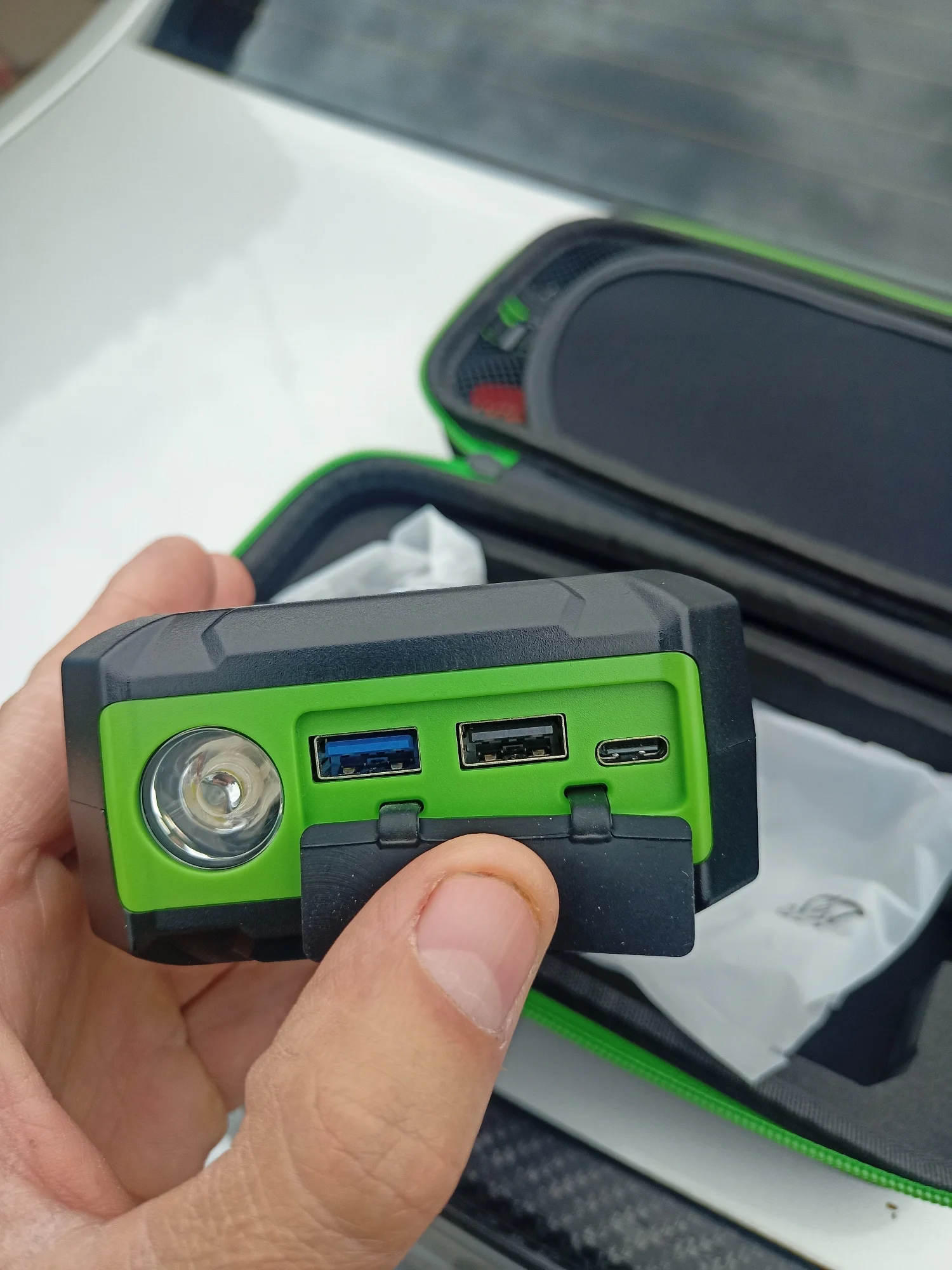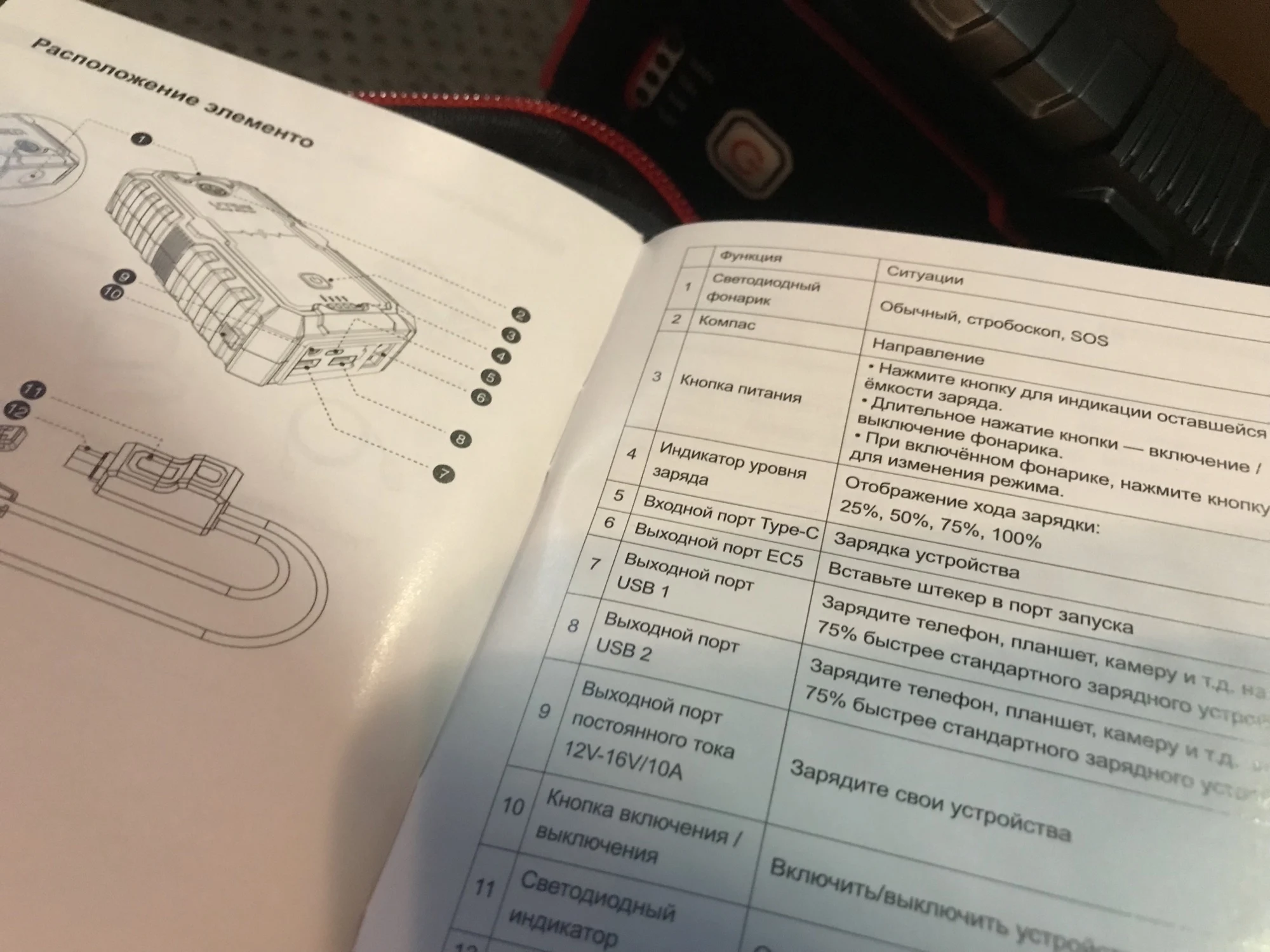 Товар шёл 7 дней из России, вид нормальный коробка чуть помята , остальное чехол и сам прибор с комплектом всё отлично, проверил работу USB входов, один USB версии 2.0, второй синий 3.0, все рабочие по крайней мере телефон заряжают, от переходника на прикуриватель автомобильный насос работает, корпус прибора пластмассовый не прорезиненный, пришёл заряженный на 75%, фонарик горит в 4 режимах, по прямому назначению ещё не проверял, как проверю на автомобиле напишу дополнительный отзыв.Denis C. 29 января 2023