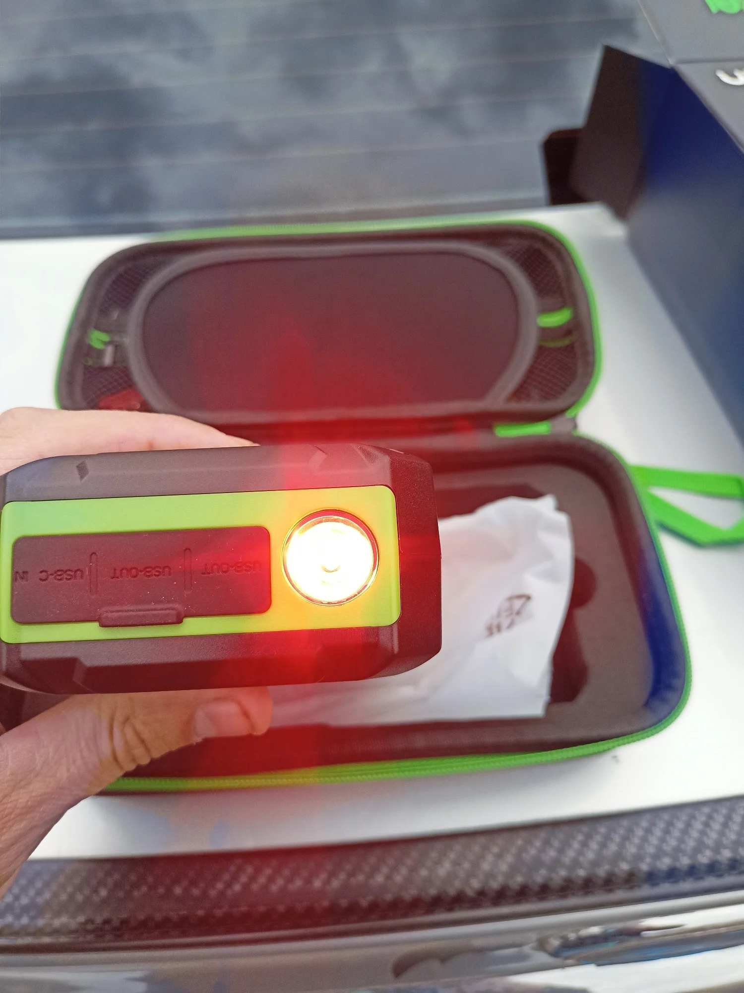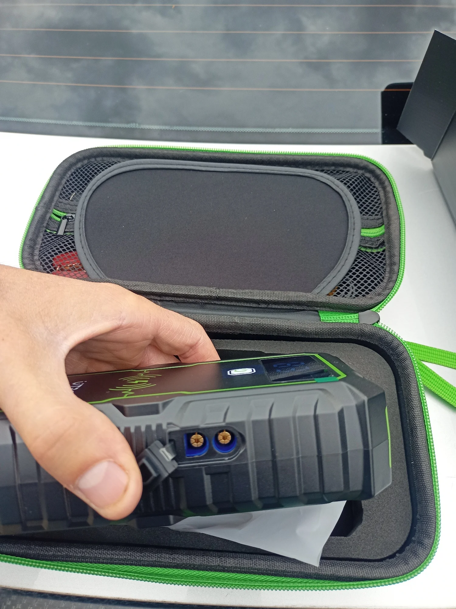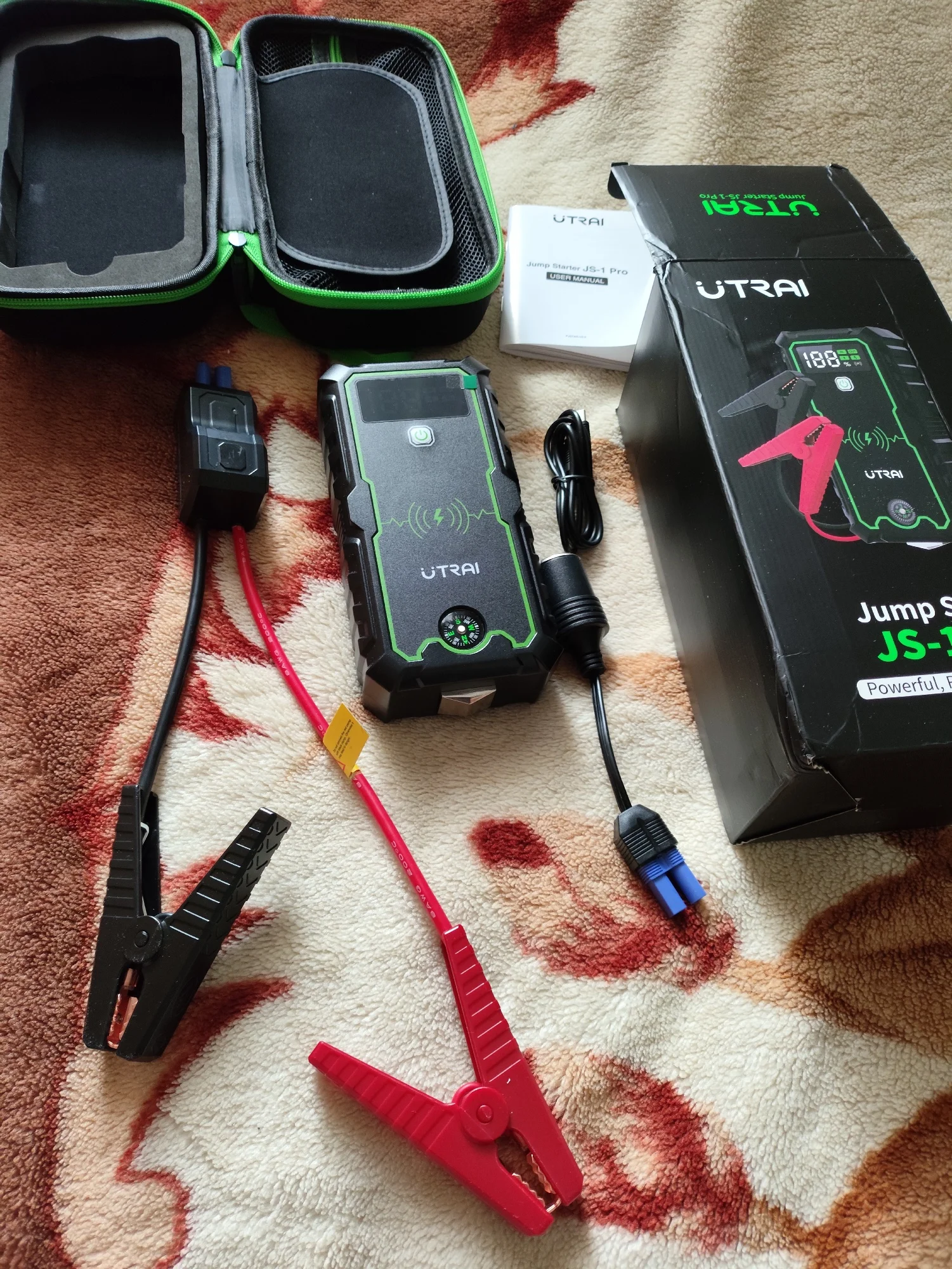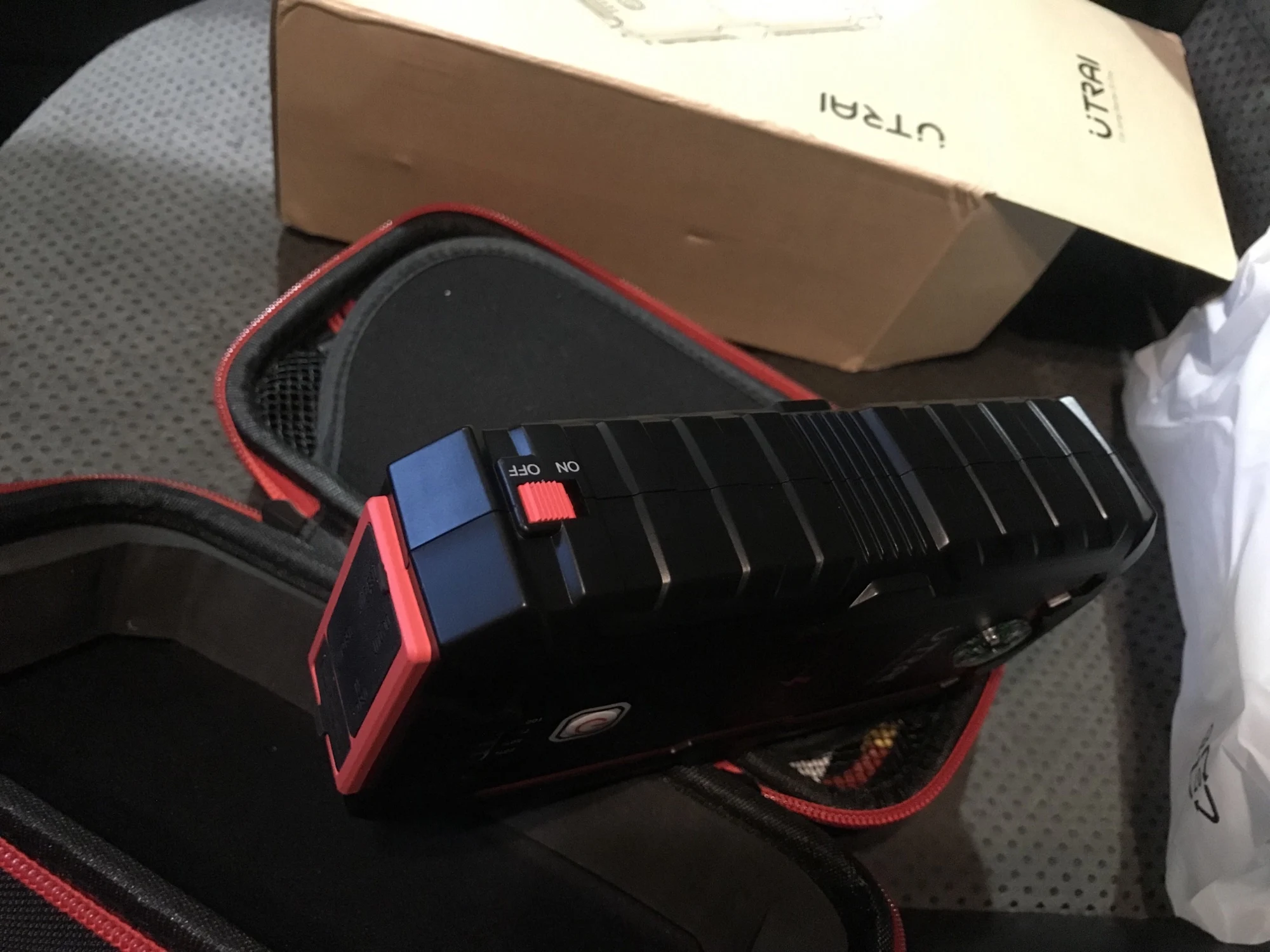 Товар шёл 7 дней из России, вид нормальный коробка чуть помята , остальное чехол и сам прибор с комплектом всё отлично, проверил работу USB входов, один USB версии 2.0, второй синий 3.0, все рабочие по крайней мере телефон заряжают, от переходника на прикуриватель автомобильный насос работает, корпус прибора пластмассовый не прорезиненный, пришёл заряженный на 75%, фонарик горит в 4 режимах, по прямому назначению ещё не проверял, как проверю на автомобиле напишу дополнительный отзыв.Denis C. 29 января 2023
