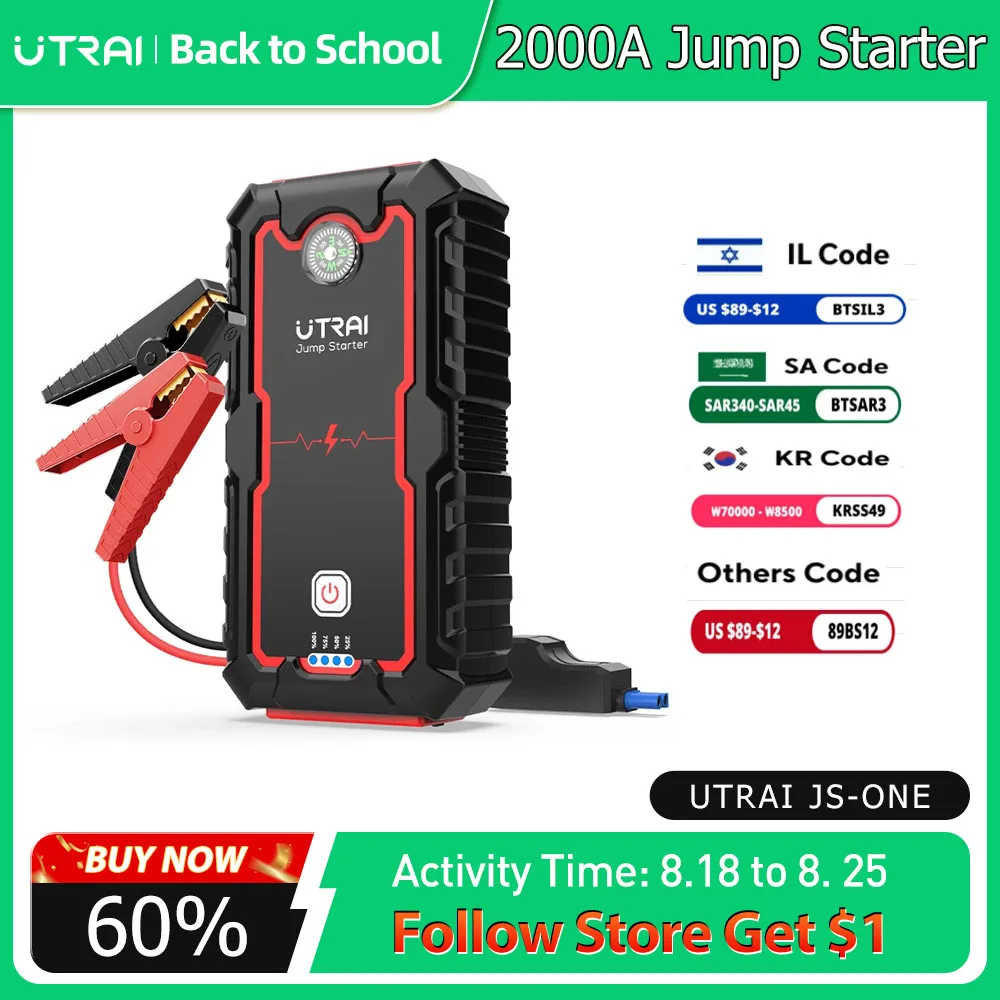 Пусковое устройство UTRAI портативное, 12 В, 2000 А аварийный бустер 12 В, пусковое устройство для автомобиля, бензинового и дизельного автомобиля
