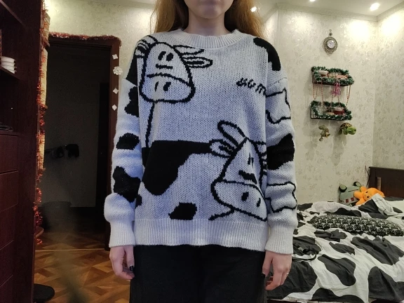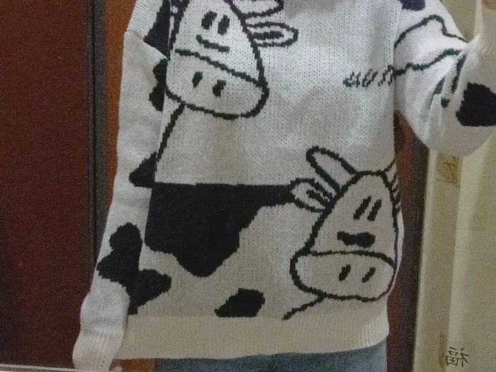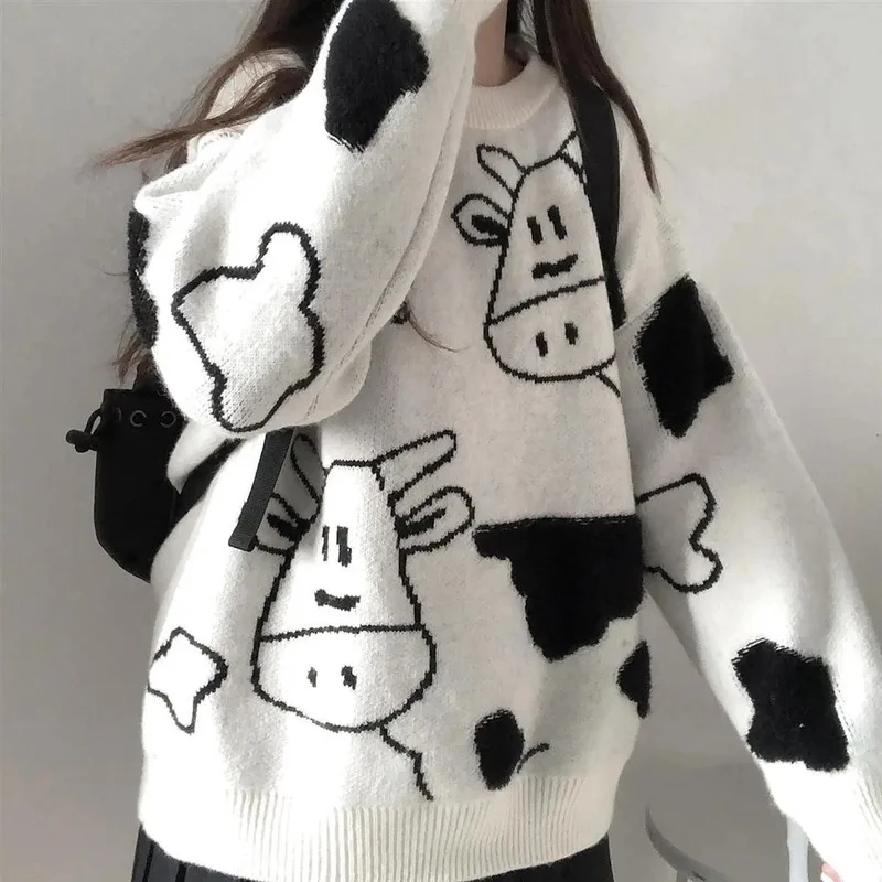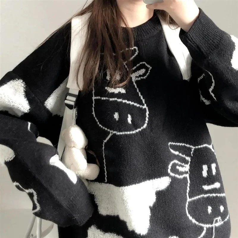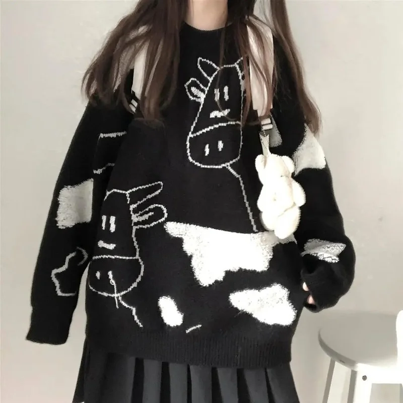 Женский свитер в стиле Харадзюку, корейский стиль, винтажный, Повседневный, свободный, с изображением ленивой коровы, для девушек, в японском стиле, одежда Ulzzang, 17156