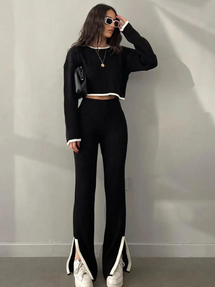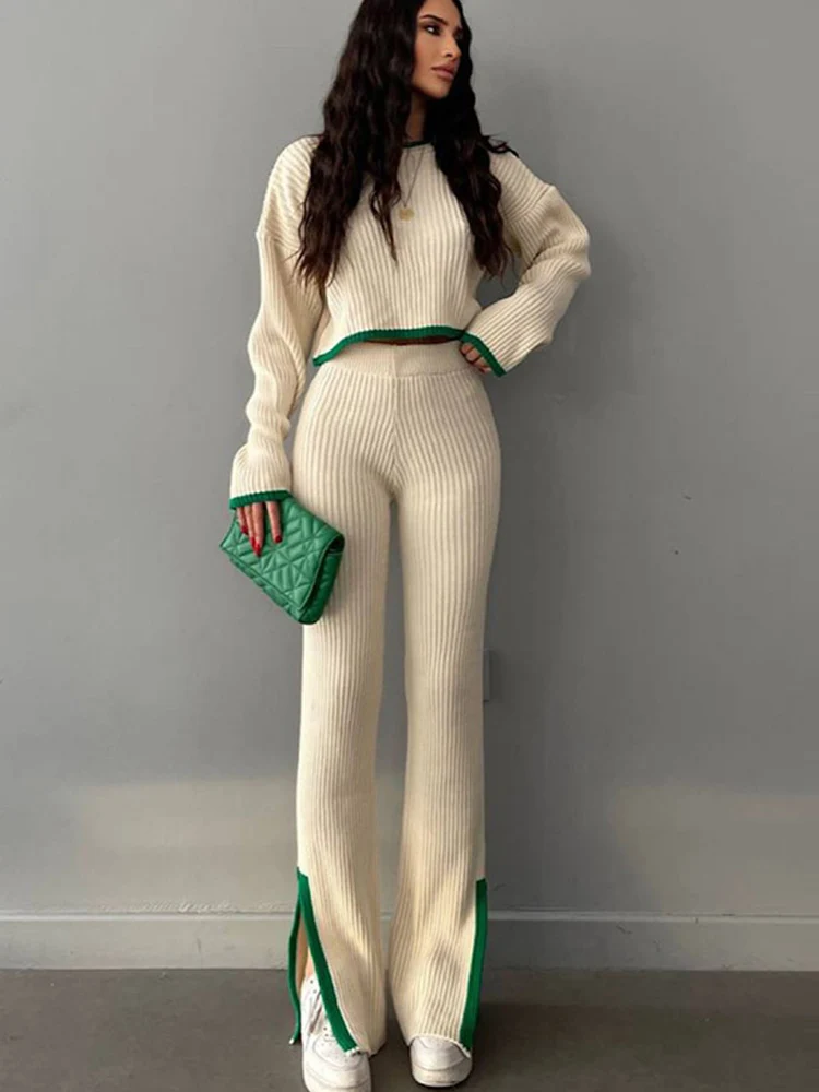 - Set Woman 2 Pieces Winter:Knitted Two Piece Women Sets
