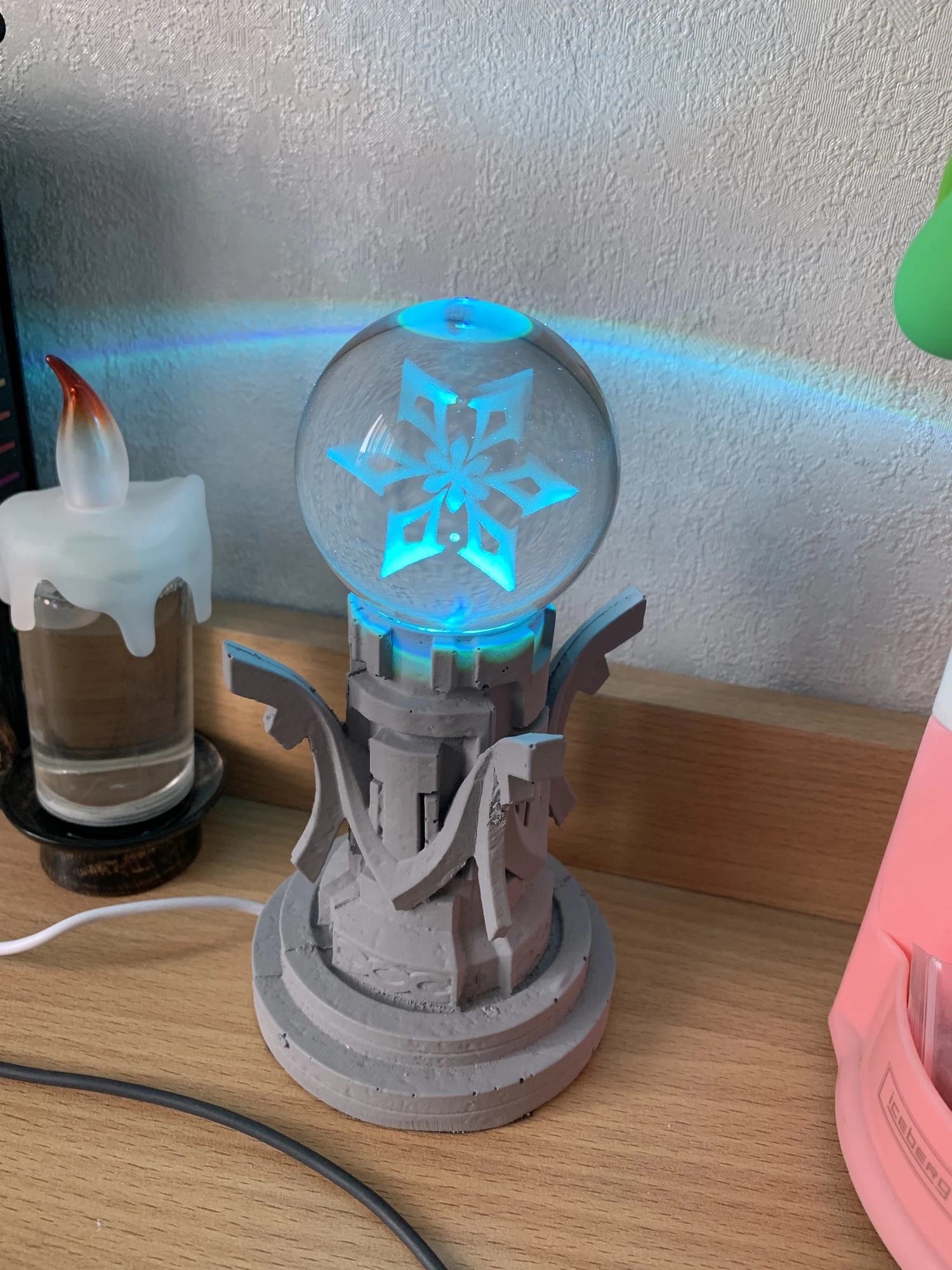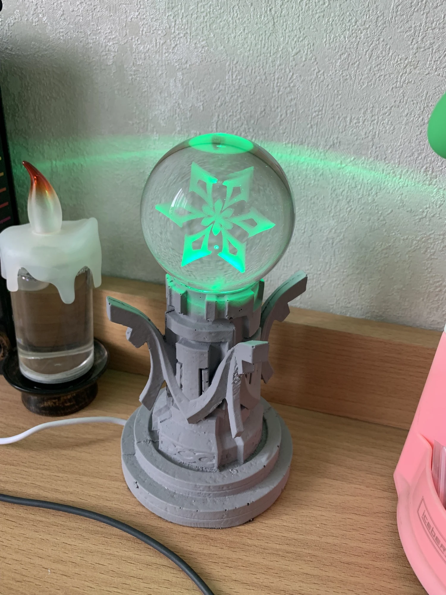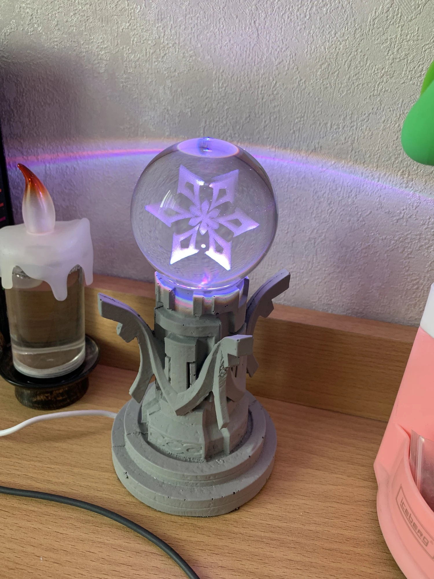 Чудесный! Упаковали очень хорошо по просьбе, всё работает, шикарный ночник!