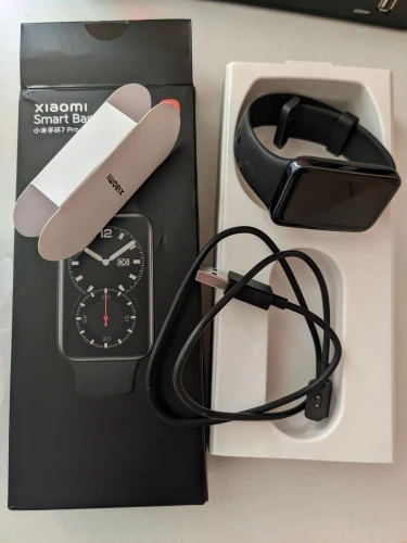 посылка шла довольно долго, но не слишком. коробка от браслета судя по виду потерпела многое во время доставки, благо сам браслет не пострадал. ранее у меня был mi band 6, не очень удобно что 7 pro не подключить к zepp life, но более менее удобно настроить функционал можно и в mi fitness. не понравилось как отображаются уведомления с сообщениями и еще некоторые функции. очень надеюсь что браслет скоро русифицируют, в целом покупкой пока довольна