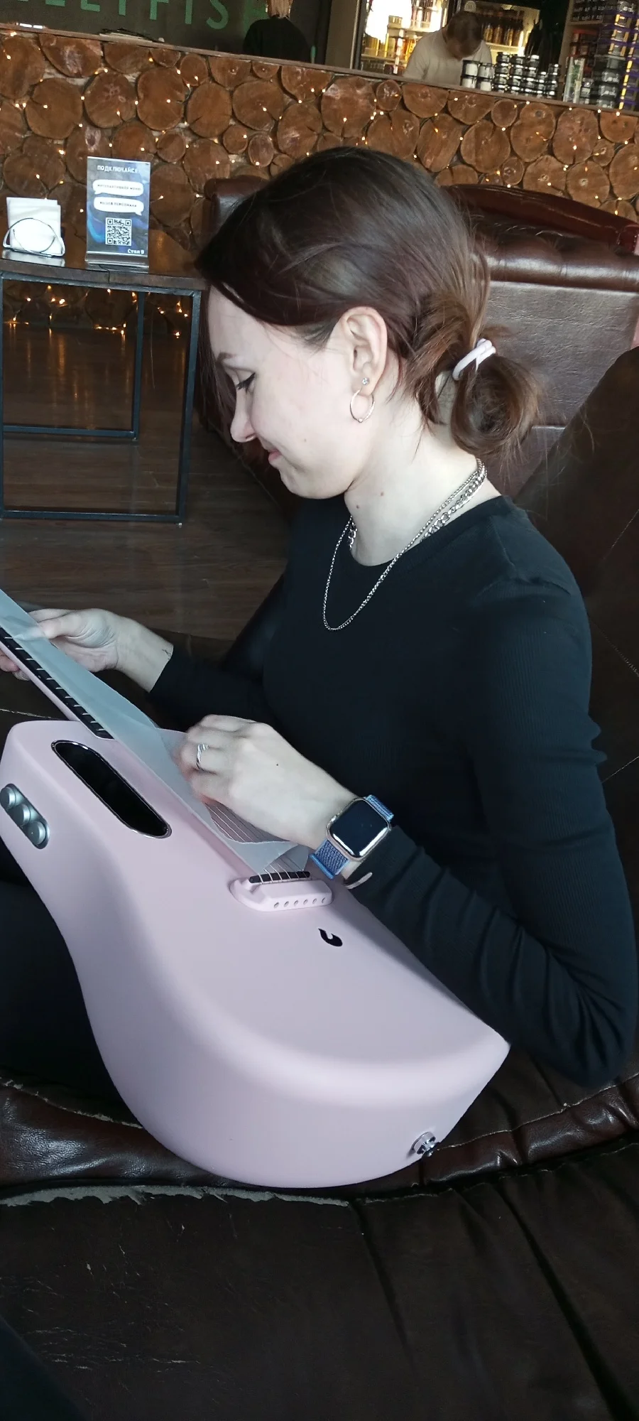 Отличная гитара. Приятный мягкий звук и эффекты. Девушка была счастлива получить такой подарок. При получении была полностью разряжена, разумеется. При первой зарядке что-то заглючило и она перестала выключаться. Но девушка разобралась, что-то там с аккумулятором подергала и все наладилось. Это я к тому, что не пугайтесь сразу если что-то на первый взгляд не работает. В итоге все работает и все супер.