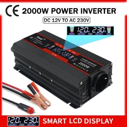 1500 Вт/2000 Вт/2600 Вт/3000 Вт Преобразователь мощности с цифровым ЖК-дисплеем от 12 В постоянного тока в 220 В переменного тока Солнечный двойной USB автомобильный ТРАНСФОРМАТОР ПРЕОБРАЗОВАТЕЛЬ с европейской розеткой