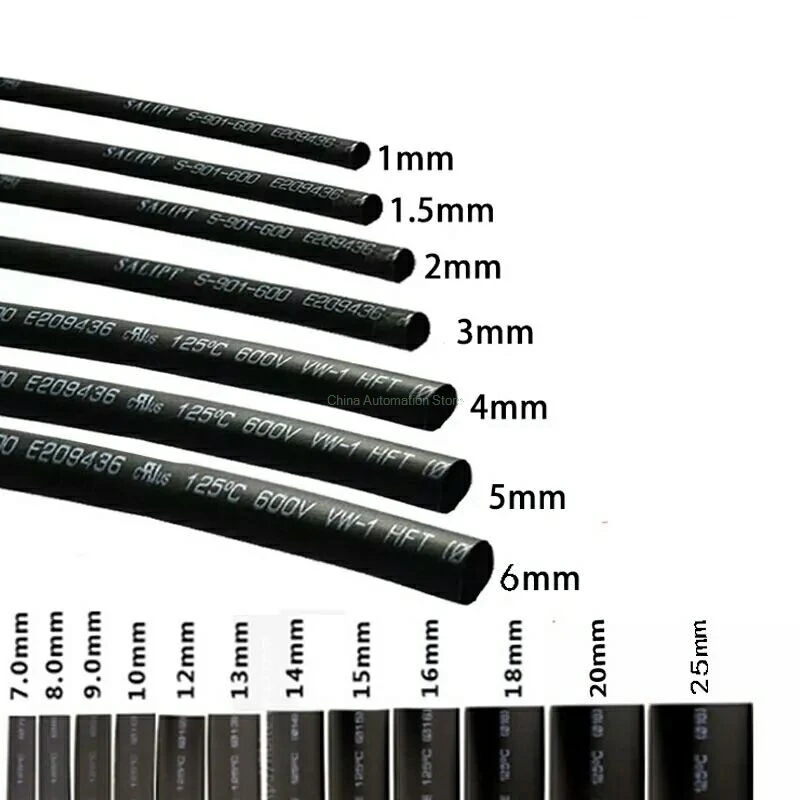 Термоусадочные трубки 2:1, черные термоусадочные трубки диаметром 1, 2, 3, 5, 6, 8, 10, 12, 14 мм, для ремонта коннекторов
