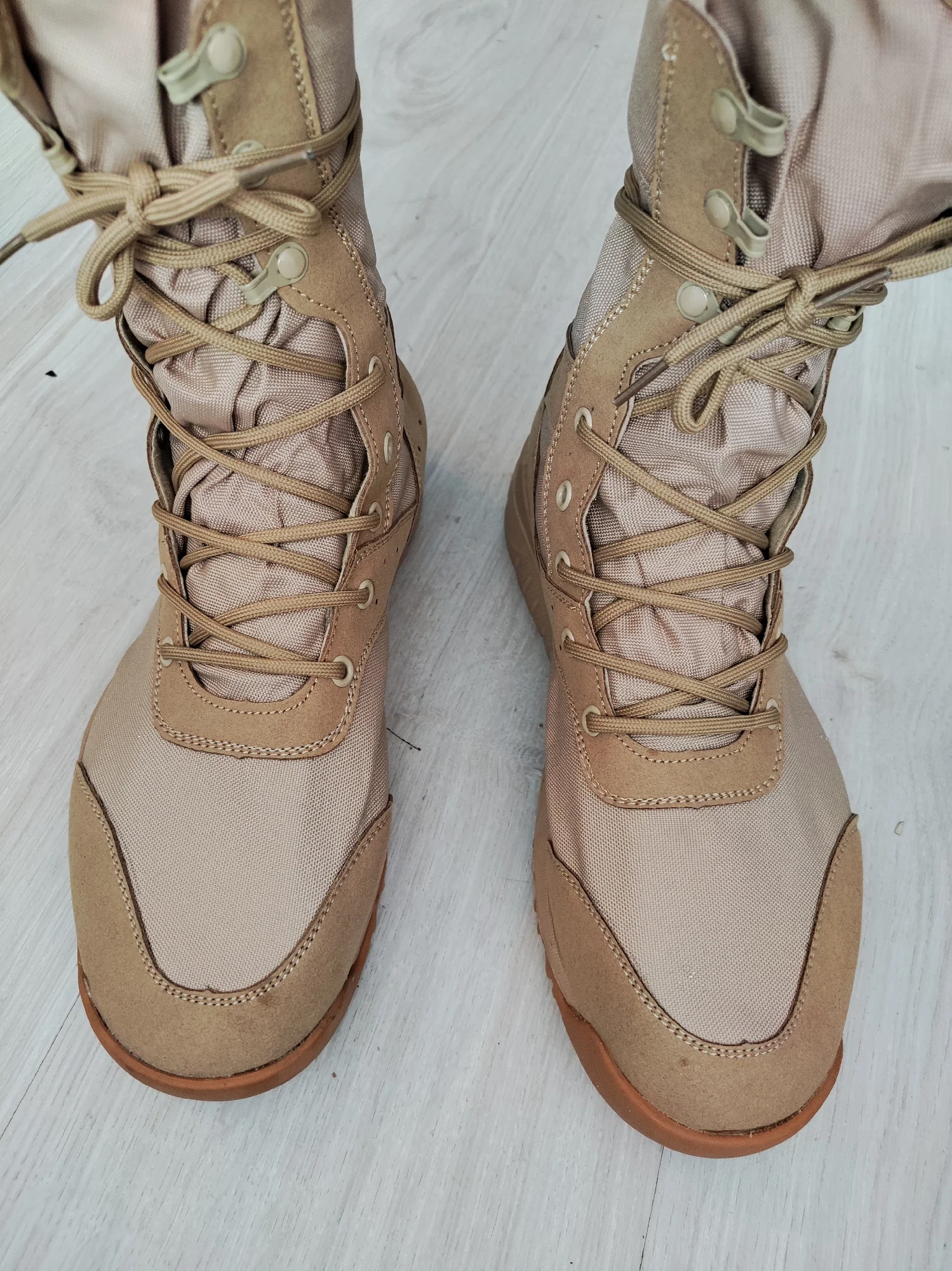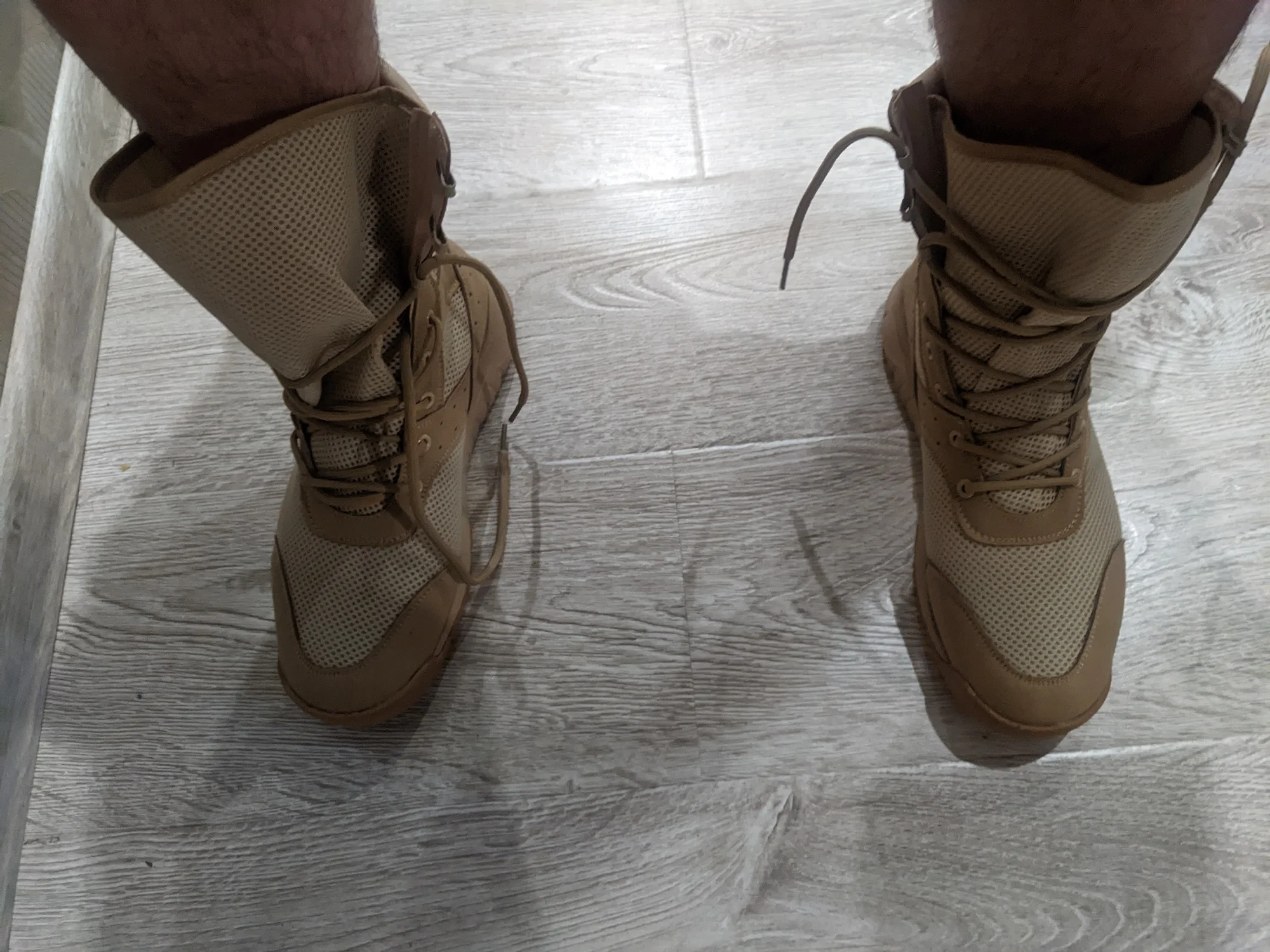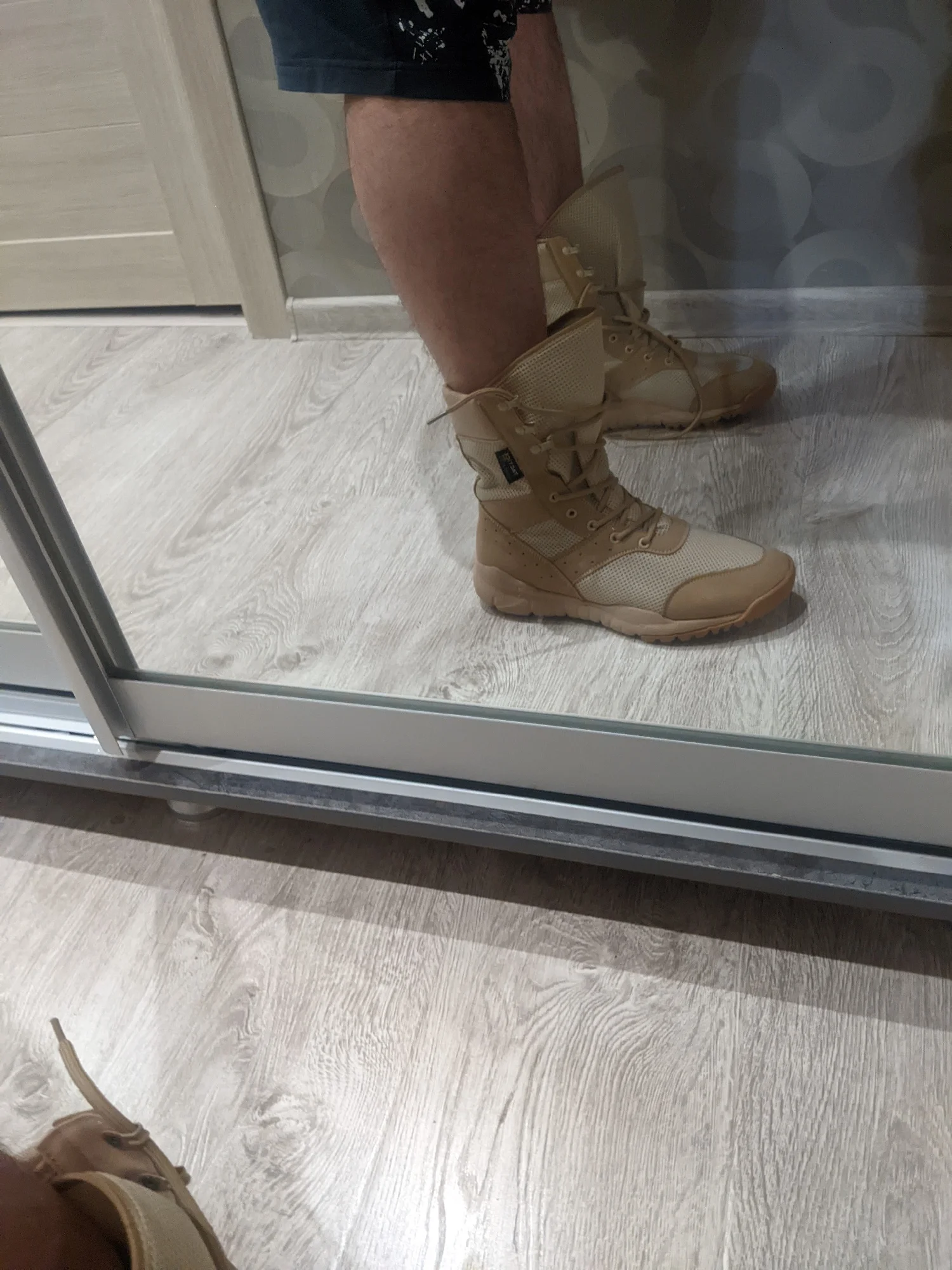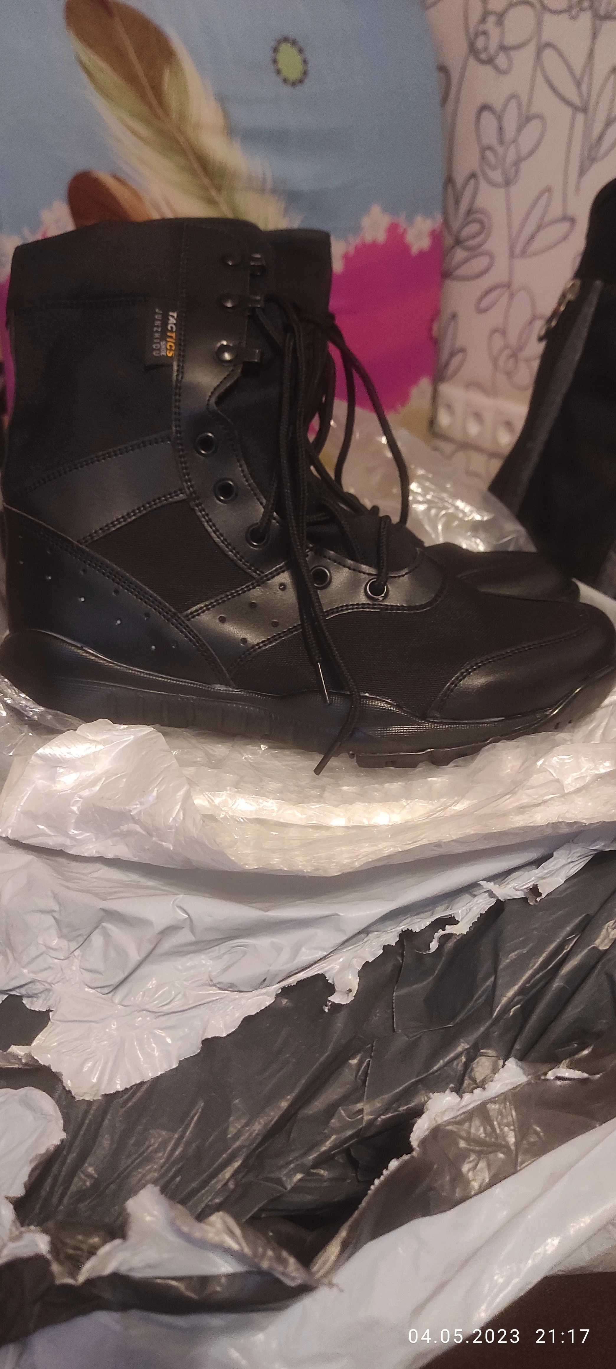 Спасибо. Берцы приехали быстро. Всего 10 дней. Спасибо продавцу. Размер подошёл. Брал 43.Они лёгкие. Клея на видно.