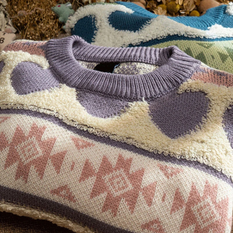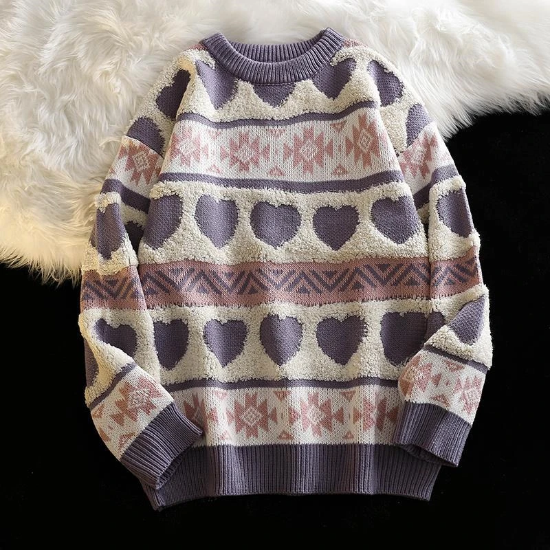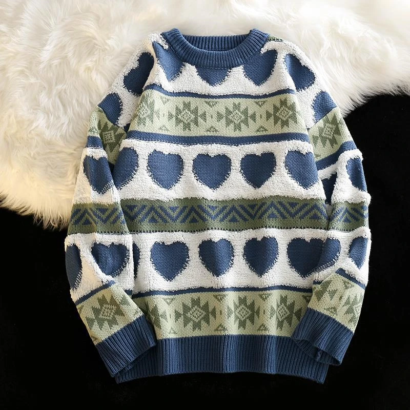 Уродливый Рождественский свитер, Женский вязаный свитер, мужской Харадзюку, вязаный пуловер в форме сердца с узором, винтажные зимние свитера с круглым вырезом