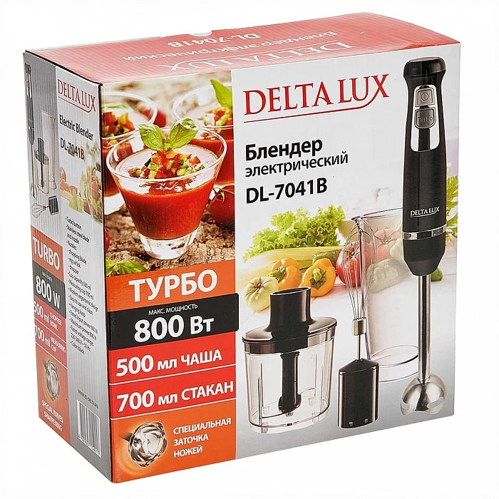 Блендер Delta Lux погружной, с венчиком, измельчителем и стаканом