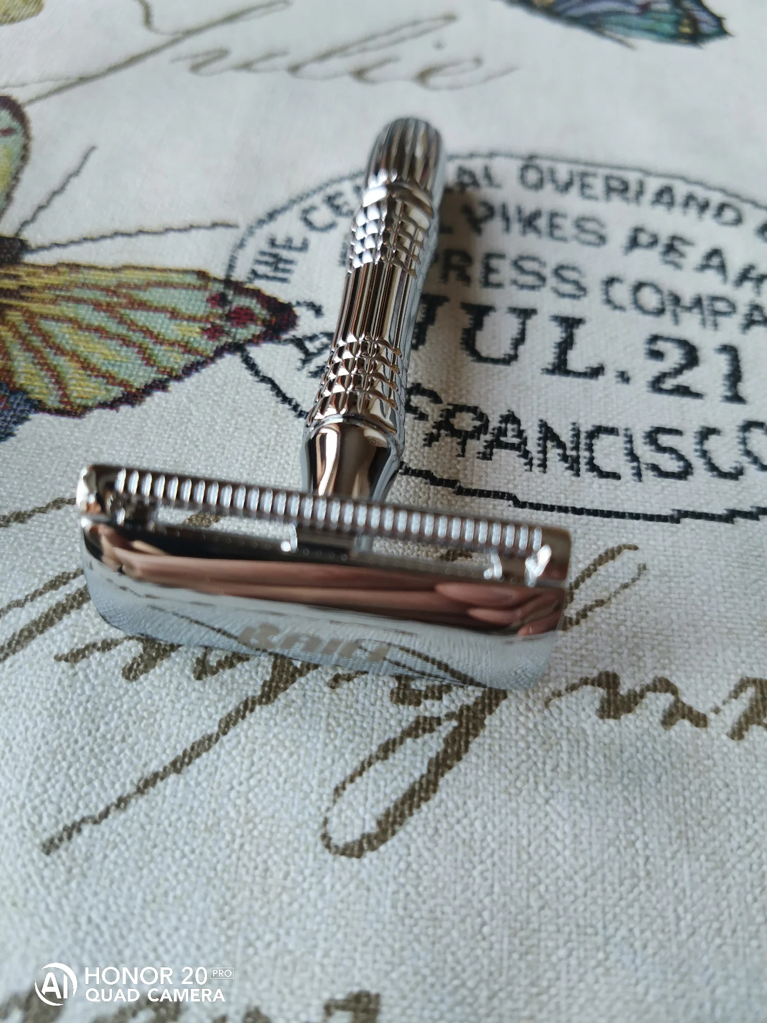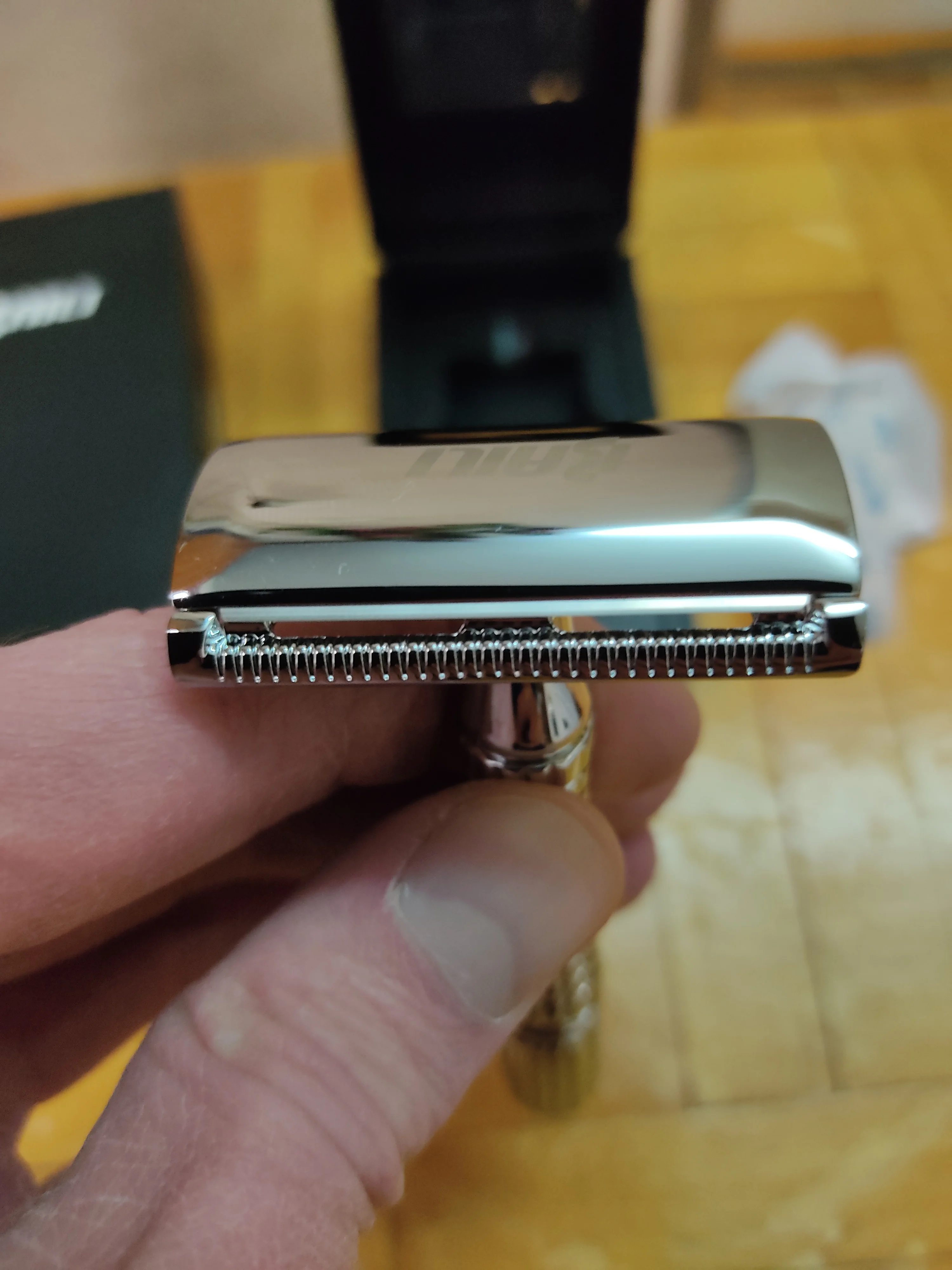 Впечатления положительные. За такую цену станок начального уровня просто замечательный. Изготовлен качественно. Голова ровная, лезвие встает без перекосов. Вес приятный. Агрессивность средняя. Приобретался в качестве подарка к 23 февраля. Но...доставка подкачала...????♂️Поступил в пункт выдачи 28.02. В пути месяц. Со дня заказа 45 дней, попал в китайский новый год, когда у них неделя праздников. Коробка помята в углу, очевидно, мягким пакетом играли в футбол ????Maxim P. 3 марта 2023