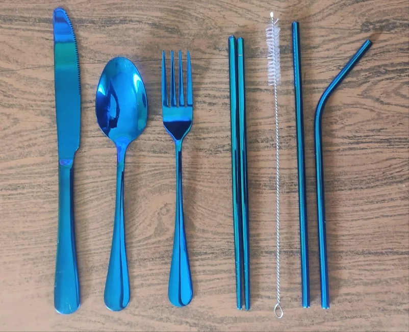 8 шт./набор, многоразовые дорожные столовые приборы из нержавеющей стали