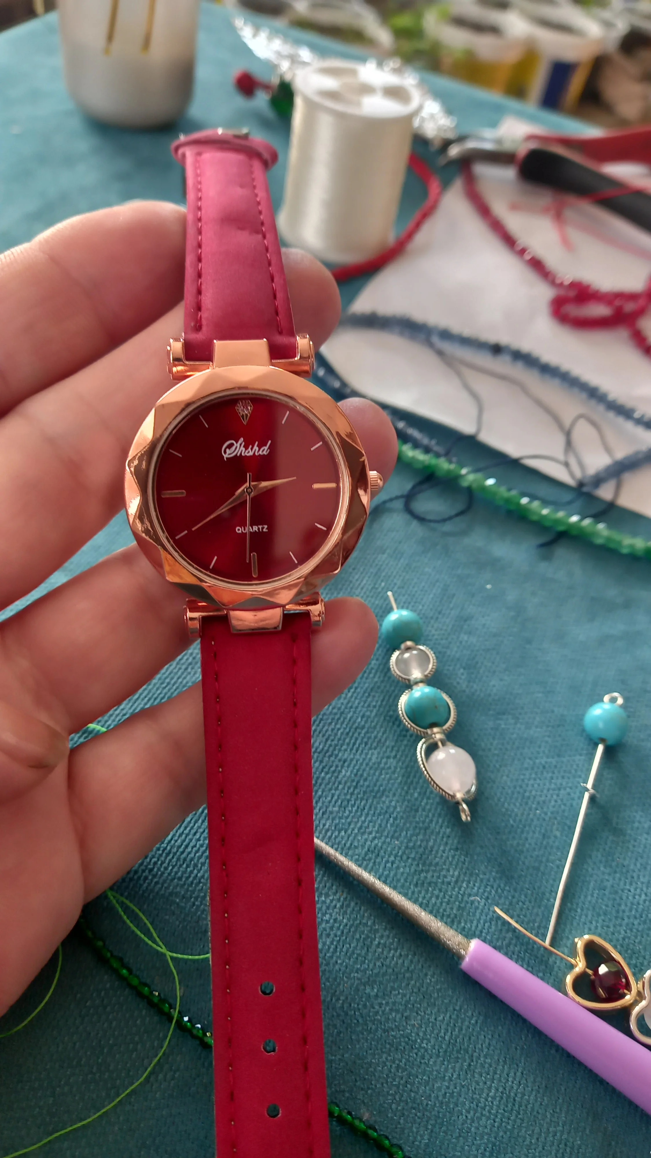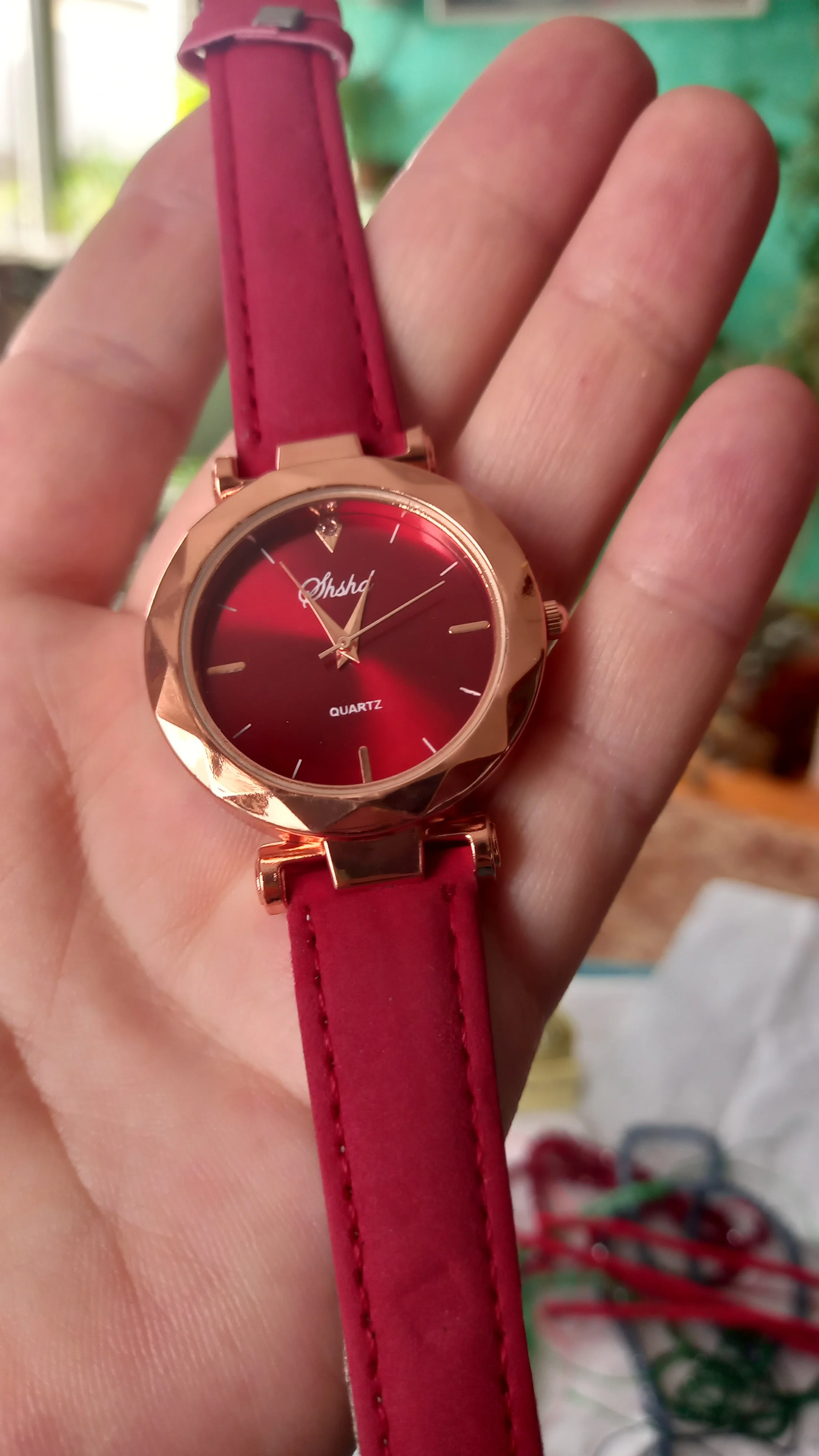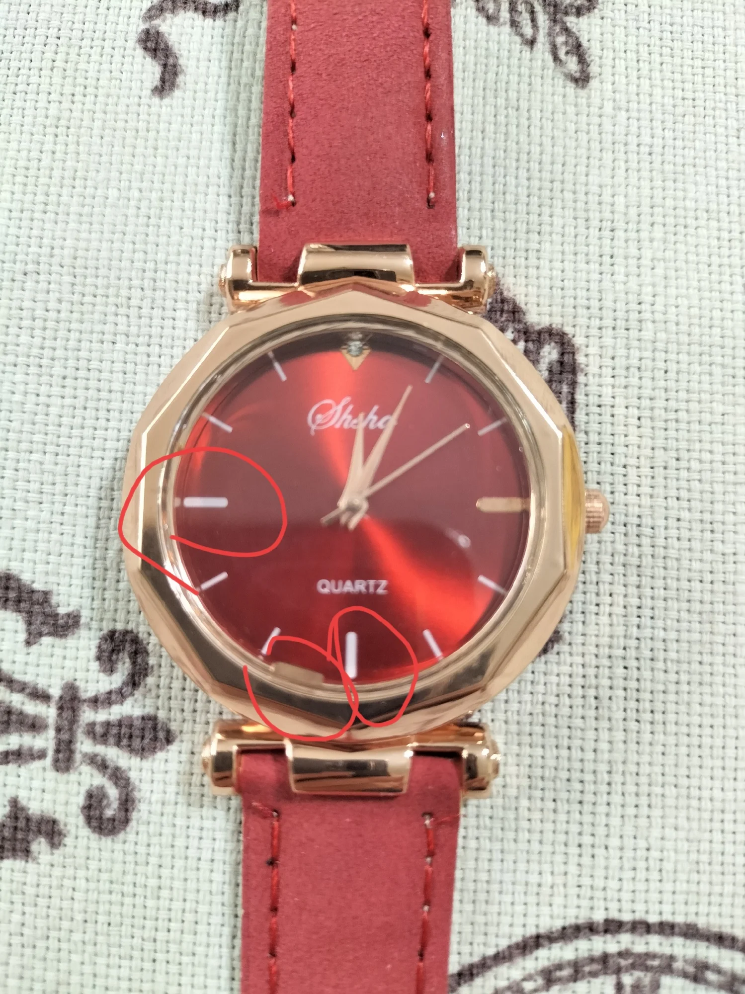 Отстой. Думала будет цвет как на фото - яркий красный, а на самом деле какой-то бледный и невзрачный. На фото на много ярче получилось, чем есть на самом деле. Качество на пару раз, почти бумага. Стекло как попало обрезанное кусками по краям и на циферблате отсутствуют наклейки металлические на цифрах 6 и 9, а одна из них на стекле оказалась. Работают шумно