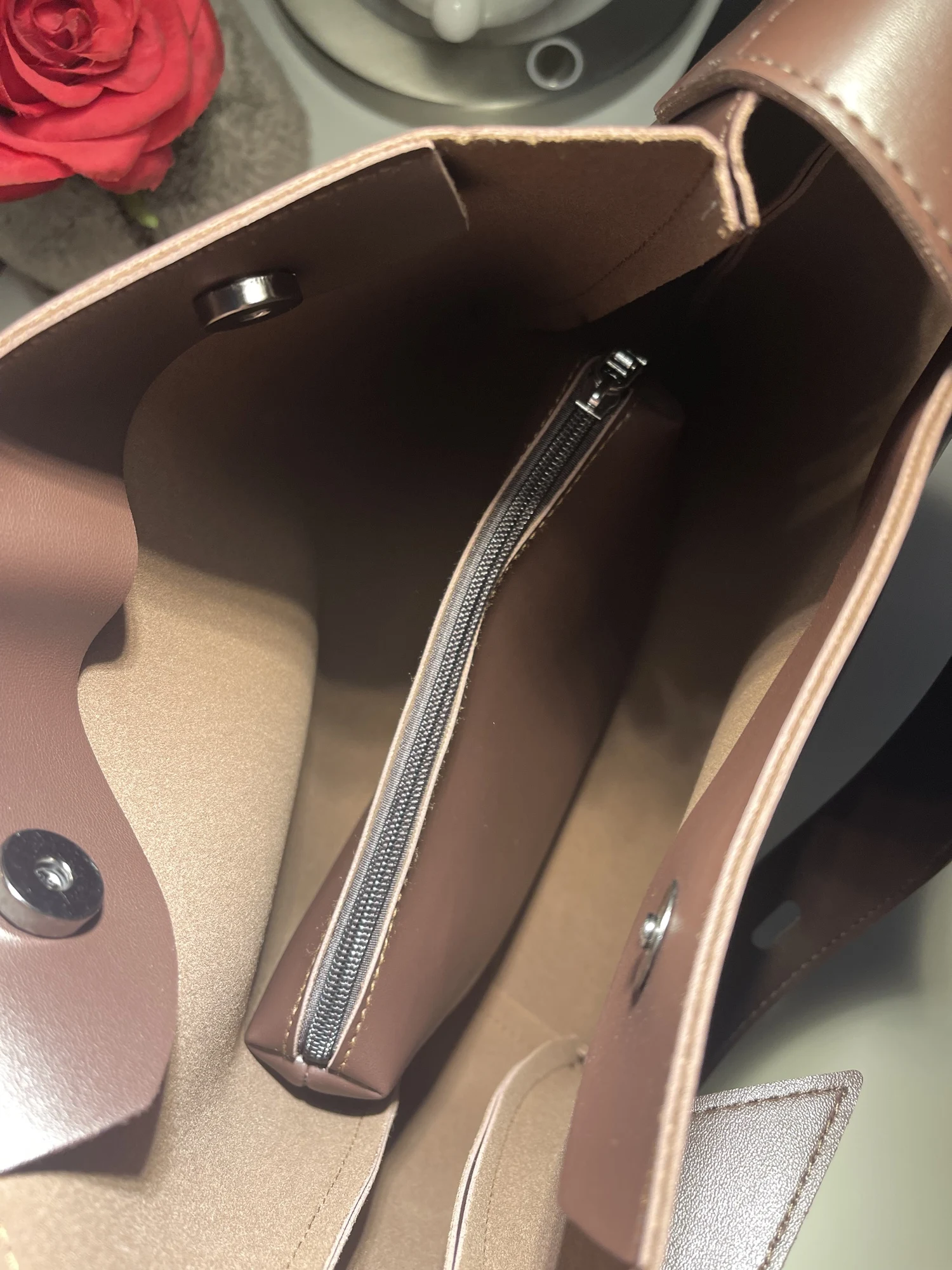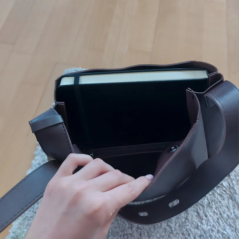 Выглядит в точности как на фото, и имеет самый потрясающий красновато-шоколадно-коричневый цвет. Это выглядит чрезвычайно лестно на различных нарядах. Он поставляется с небольшим мешочком внутри, в который может поместиться довольно много вещей. Прямо сейчас, внутри сумки у меня есть: Мой громоздкий кошелек, мои ключи, протеиновый батончик, расческа, 4 помады и бальзам для губ, роликовый дезодорант, зеркало для макияжа, упаковка жевательной резинки и зарядное устройство для моего телефона. За пределами сумки, в основную сумку, я могу поместиться мой альбом для рисования формата А4, мой пенал, мой мини-iPad, мой телефон и, возможно, небольшая бутылка с водой, вот и все. Вы не можете вместить дополнительный ланчбокс для университета/работы. Не поместится дополнительный Зонт или чехол для солнцезащитных очков. Я думаю, что это просто идеально подходит для дам, которые на самом деле не приносят с собой столько, когда выходят, но для дам, которые любят сумку большой емкости, это не для них. Однако я все равно рекомендую это 100%. И пришло так быстро!