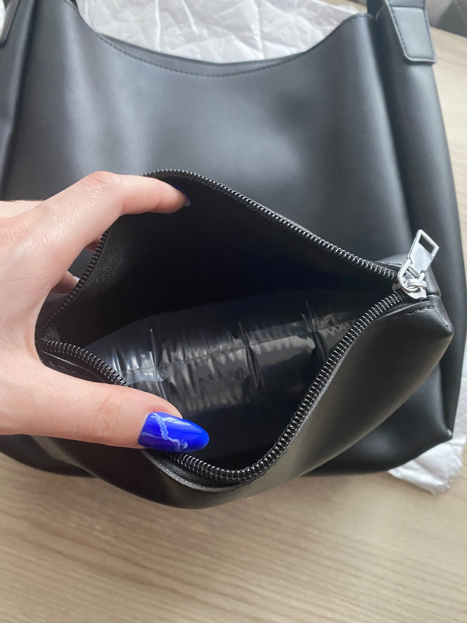 Сумка очень качественная и хорошая. Никаких ниток. Все кнопки рабочие и молния хорошая. По размеру как обычный шопер. НО. Видимо при сборке заказа с другими товара повредили и порезали сумку. Будто ножом, потому что срез ровный и глубокий, смогли две упаковки разрезать???? Очень расстроена, тк сумка очень понравилась, но из-за халатности сборщиков или доставщиков товар пришел поврежденный.