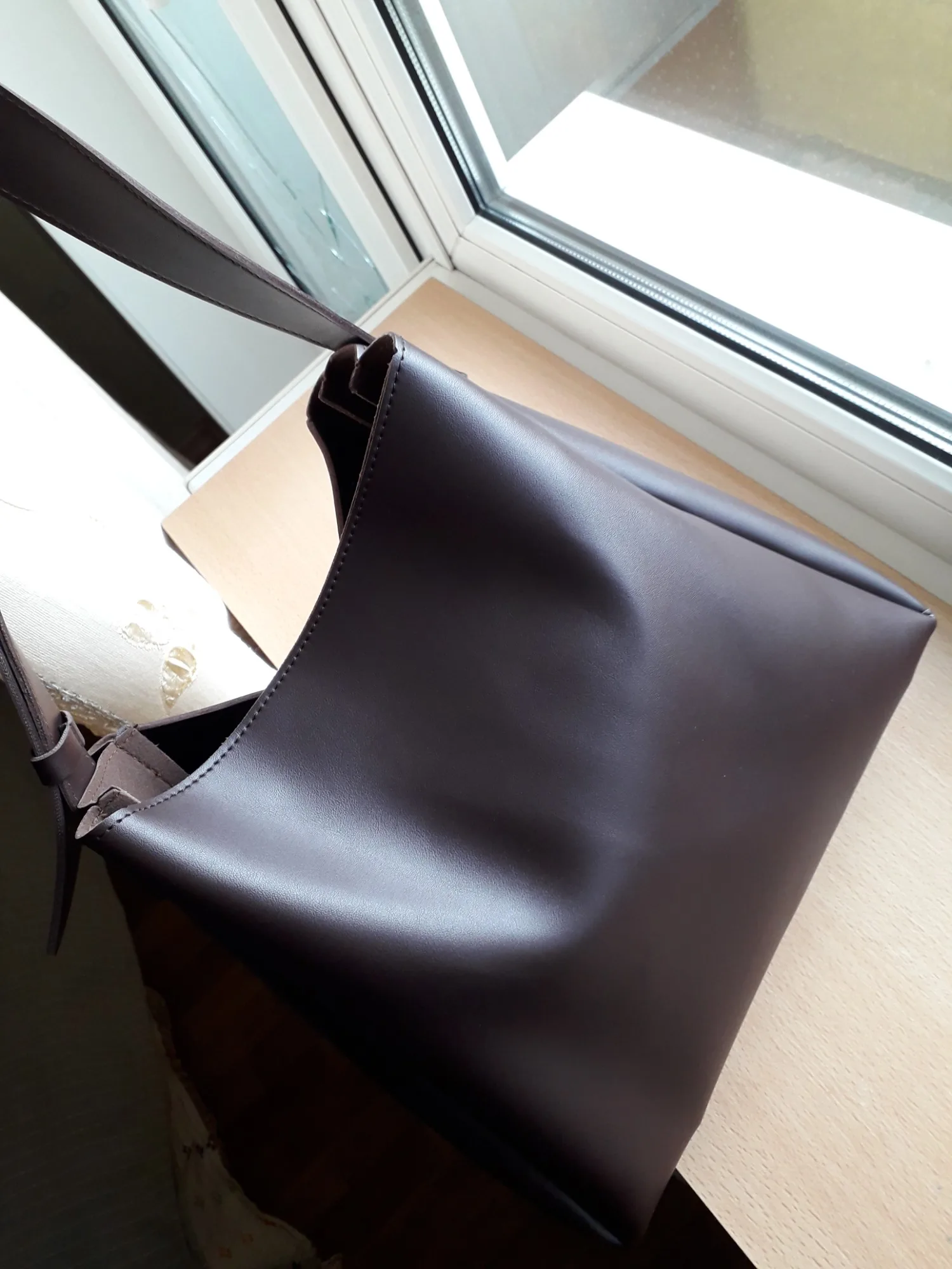 Пришла целой в пупырке, пакете и пыльнике, воздушная подушка была только в косметичке. Чуть меньше заявленных размеров. Кнопки на магнитах. Цвет сумки не коричневый или шоколадный, а в реальной жизни более баклажановый. Ремешок коротковат, то есть мне с ростом 180 НА плече подходит носить только в максимально удлиненном состоянии. Вряд ли кому-то понадобится делать ремешок корче, это скорее для декора. Продавец отвечал на сообщения. Сумка мне понравилась, как и ожидала. Но она очень тонкая, хлипкая и кнопки долго не прослужат. Брала, чтобы понять, мое ли с сумками ходить. Любителям таскать тонну хлама, с желанием, что она прослужит вечно, лучше поискать из дорогого сегмента. Но для летних прогулок, думаю идеальна. Посмотрим, выдержит ли суровую зиму.ANNA K. 29 января 2023