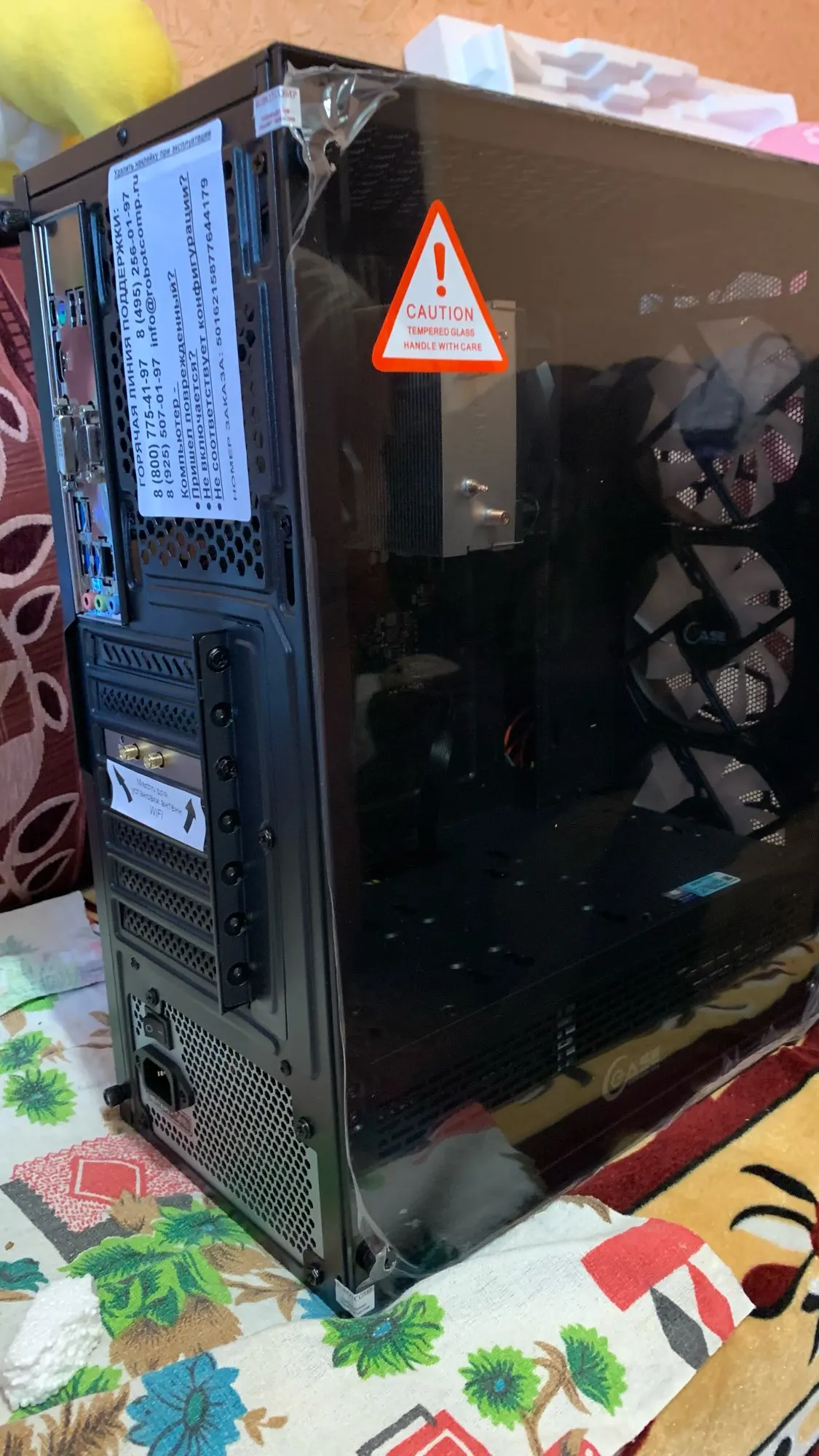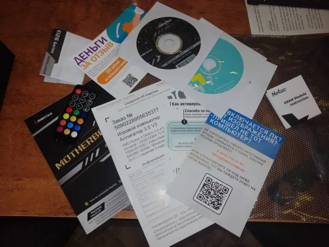 Спасибо за новый компьютер, брали для работы, а не для игр. Заказ оплатили, применив скидочный купон продавца. Доставка курьером до двери Почтой России, в Новосибирск заказ пришёл за чуть больше, чем неделю. Системный блок был хорошо упакован, поэтому пришлось долго разматывать упаковочную плёнку. Как достали из коробки, так сразу проверили целостность корпуса. Всё целое пришло, даже боковая стеклянная дверь в плёнке, плюс две гарантийные пломбы на ней сверху дверки и снизу. В комплекте поставки несколько компакт-дисков и прочая документация на отдельные компоненты системного блока. После двухчасового прогрева блока до комнатной температуры, включили компьютер, подсоединили клавиатуру, мышку и местный монитор, для этого есть с обратной стороны блока древний разъем VGA и более современный HDMI. Оказалось, что установлена и активирована система Window 10 Pro ещё в июле 2021 года. Также проверили остальные параметры системы. Они полностью соответствуют тому, что указал продавец на сайте.