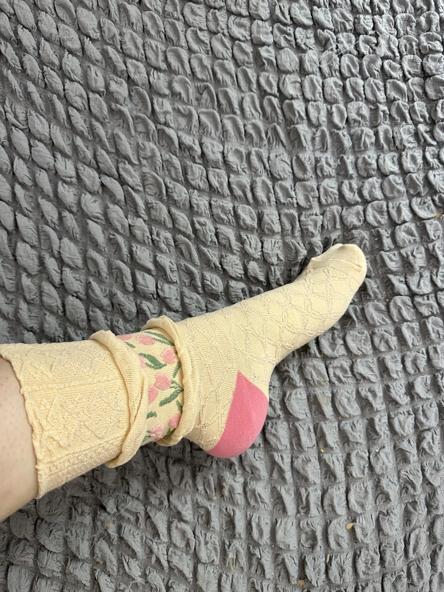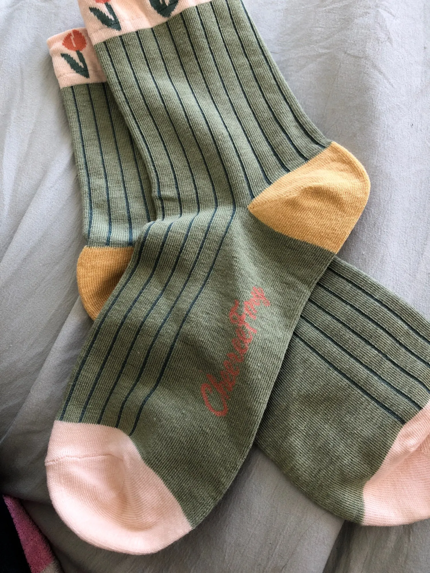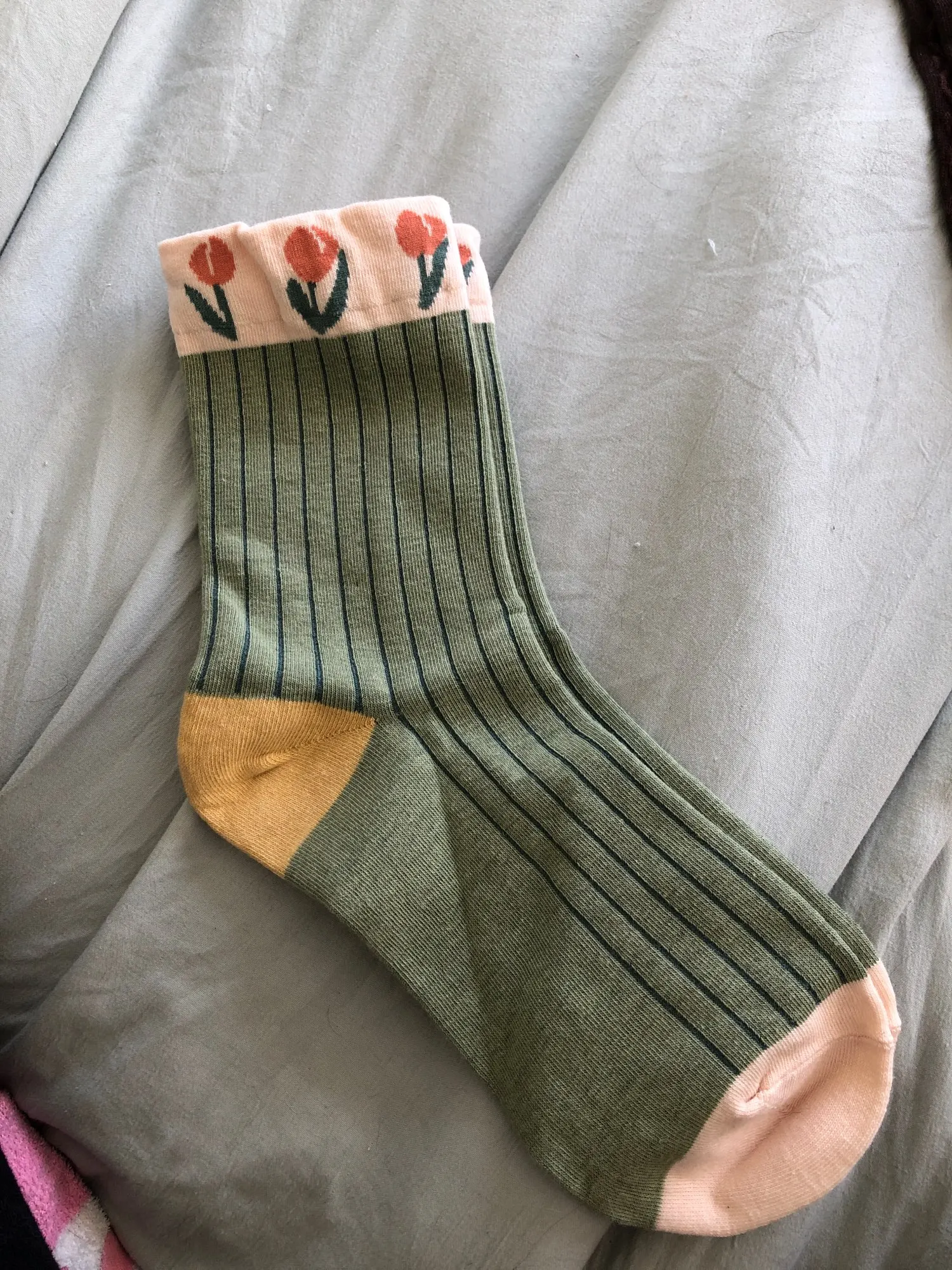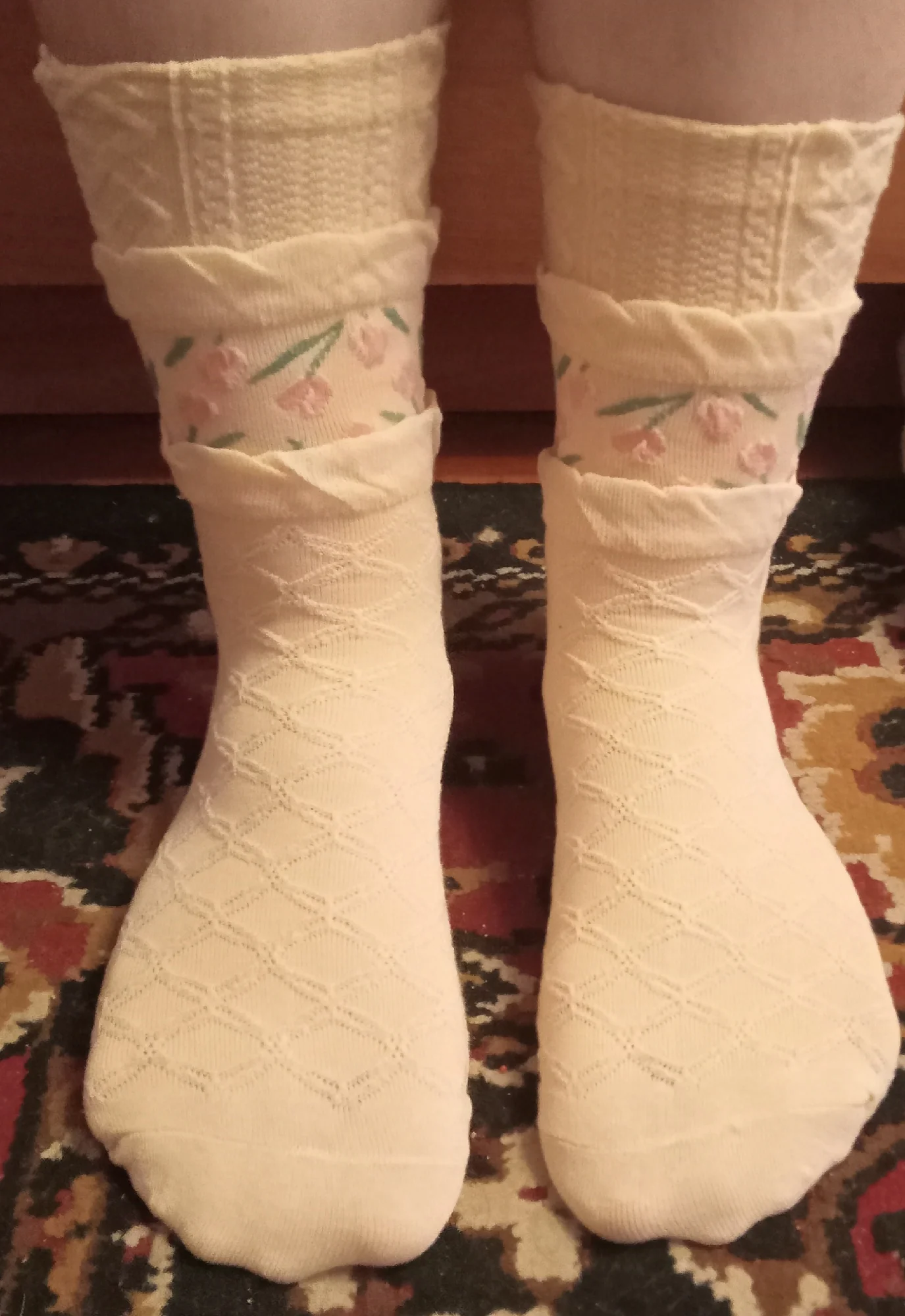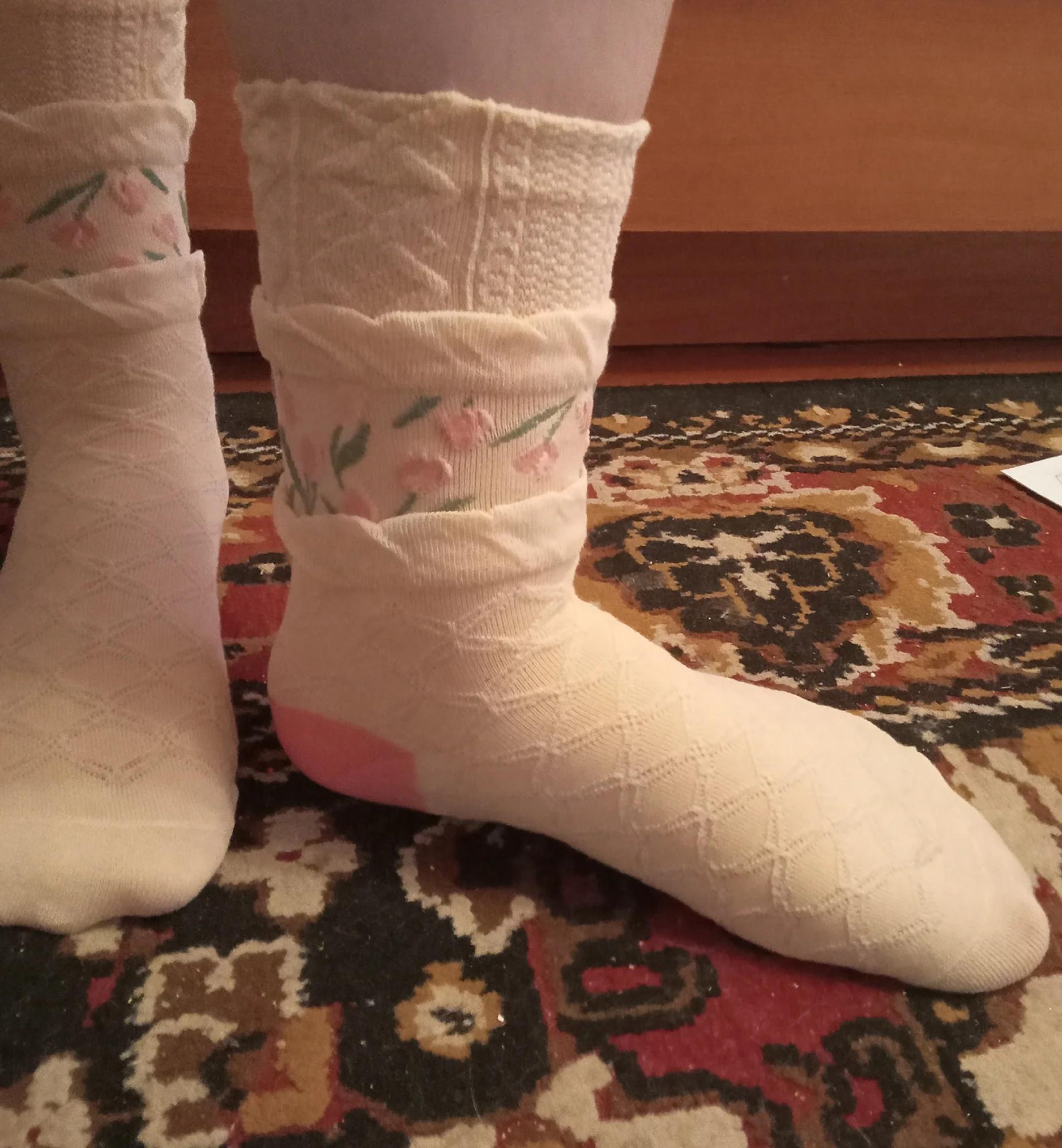 Они милые и очень похожи на фотографии, но в реальной жизни цветочный узор выглядит довольно плоским? В основном они похожи на Мультяшные носки. Основываясь на фотографиях, я ожидал, что они будут толще и более высокого качества. Они все еще милые, и я все еще рад их носить, я просто ожидал, что это будет более толстая вязка вместо более тонкого носка. Все еще довольно прочный и отлично подходит для весны!