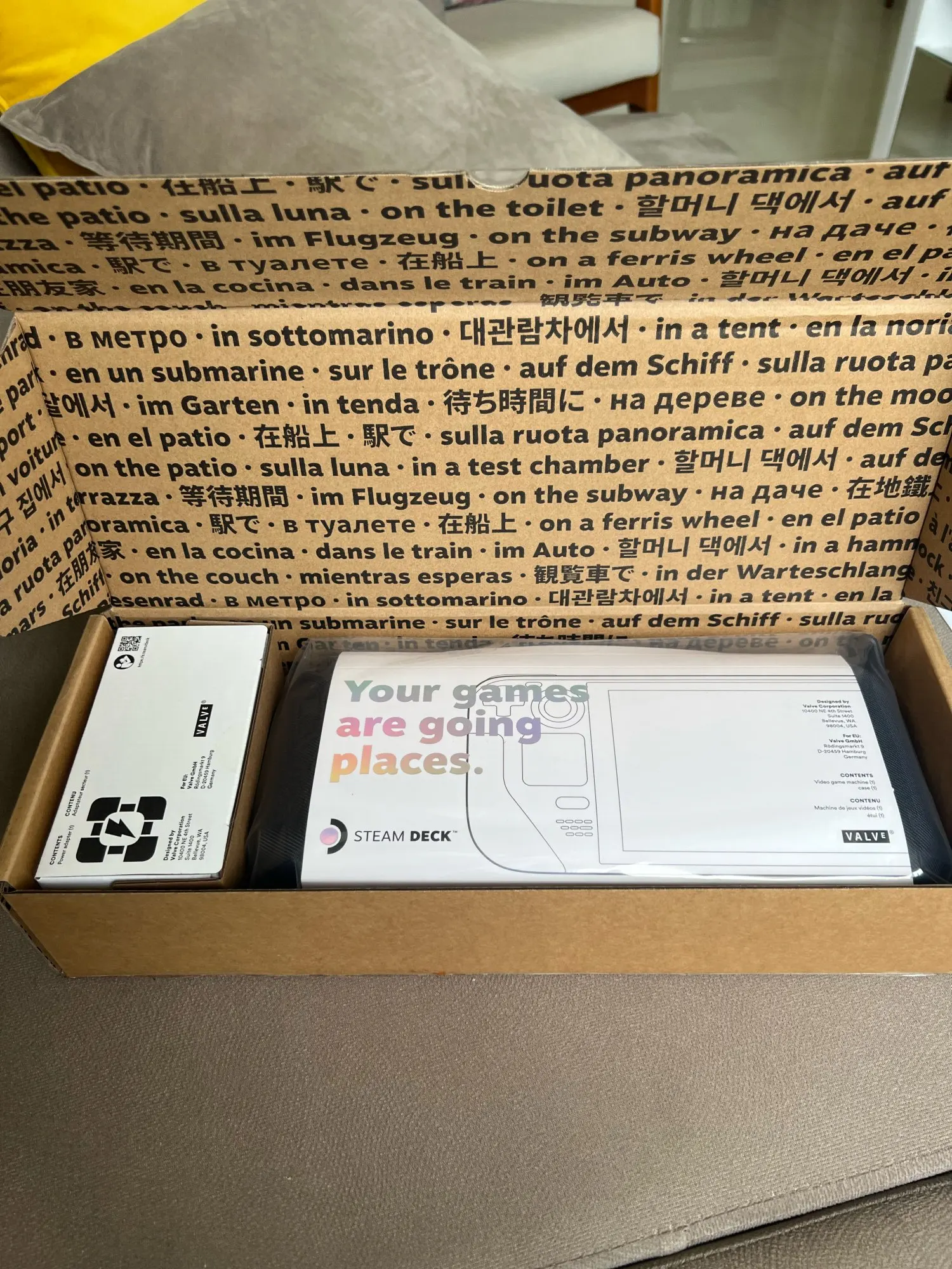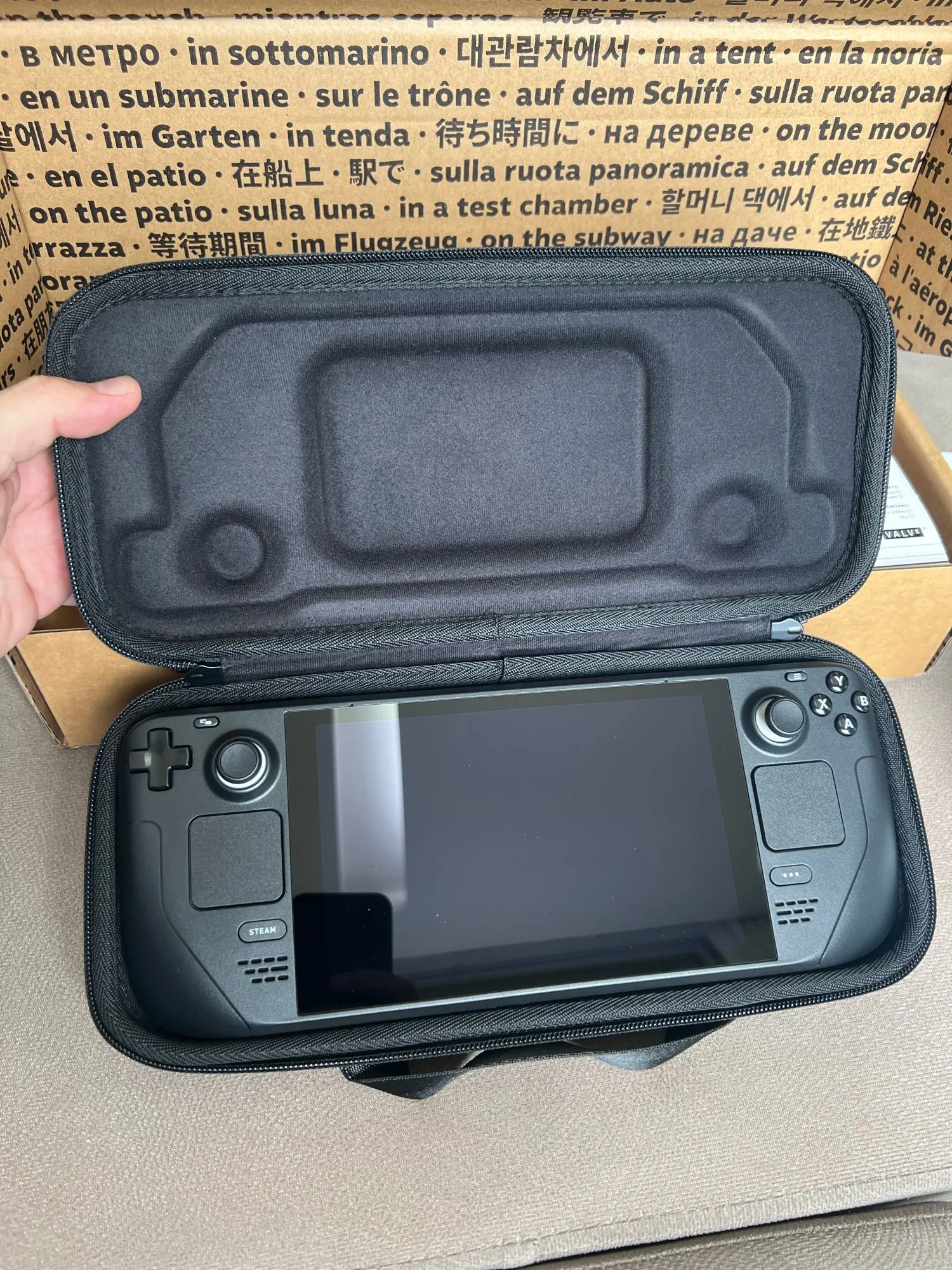 Доставка невероятно долгая, заказал 6го ноября, прибыло 13 декабря. Ехало моим любимым маршрутом из Китая через Москву во Владивосток. 9 дней чилило на таможне. Ну да ладно, главное что посылка в целости и сохранности, упакована хорошо в пупырчатую пленку, кейс стим дэка опечатан пломбой от valve. В комплекте продавец дополнительно положил переходник с американских розеток. Не видел что бы кто то об этом раньше писал, говорил, но чехол дико воняет резиной, как и сам стим дэк из вентиляции. Само устройство выше всех похвал, работает отлично, попробовал пока не много игр, но всё что пробовал работает, к управлению нужно привыкнуть, но оно удобное позволяет играть во всё. Даже для старых игр для винды вроде Готики работают все фишки, можно сворачивать, отправлять в сон консоль, и при включении продолжать с того же места (даже на винде при попытке свернуть готика крашится с:). С интерфейсом линукса имеются проблемы, не работает встроенный магазин и нет русского языка интерфейса, но это линукс, я думаю всё можно решить, нужно только разобраться. И ещё сильно мало памяти, версия 64 гб, после первого включения обновляется, потом ставятся все протоны и директ иксы и памяти остается чуть больше 30Гб, надо сразу брать флешку. А так спасибо продавцу, всем советую)Vladislav R. 14 декабря 2022