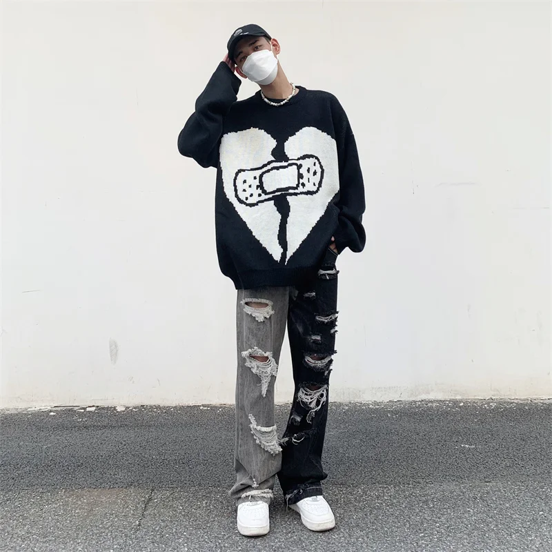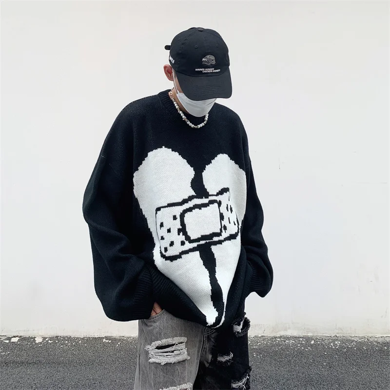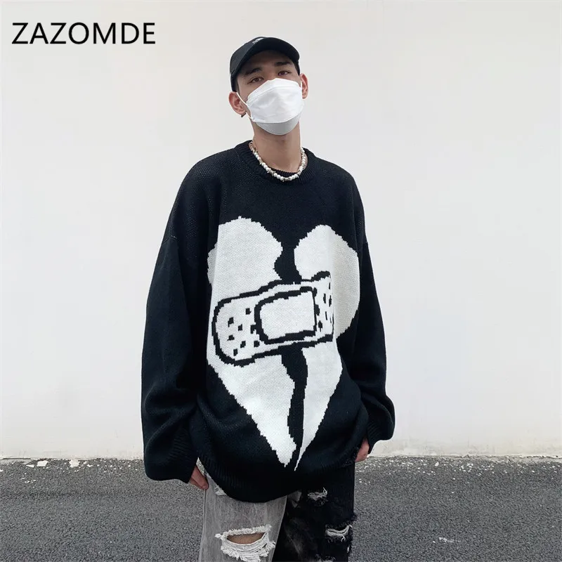 Свитер ZAZOMDE в уличном стиле, вязаный пуловер с длинным рукавом, зимний свитер с круглым вырезом, вязаный свитер в стиле хип-хоп, мужской черный свитер, пуловеры