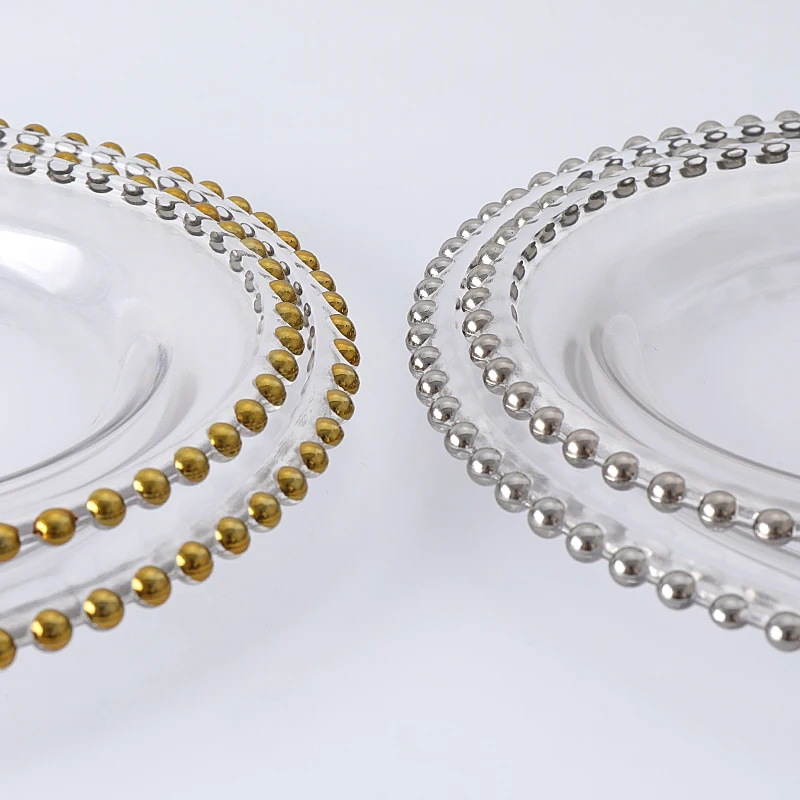 Европейские Стеклянные жемчужные блюда с золотой инкрустацией, тарелки для стейка, салаты, украшения для свадебной вечеринки, праздника, подарочная посуда
