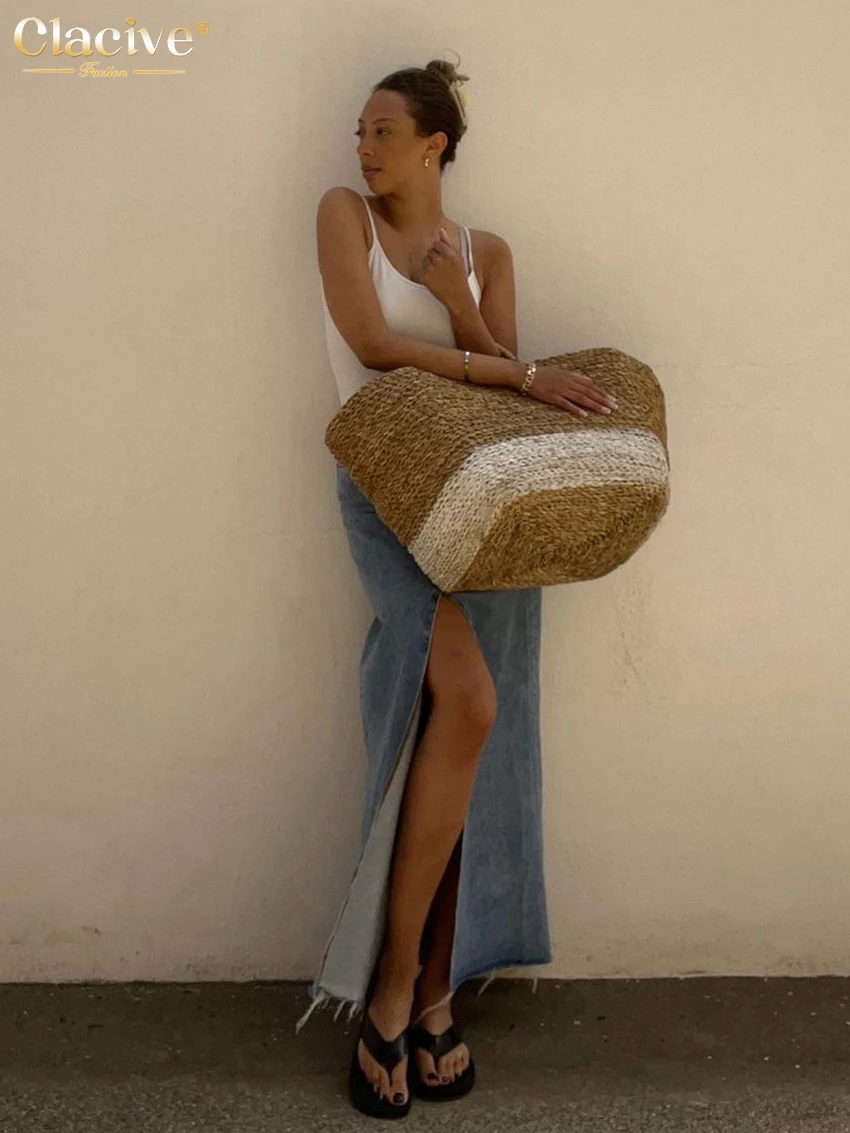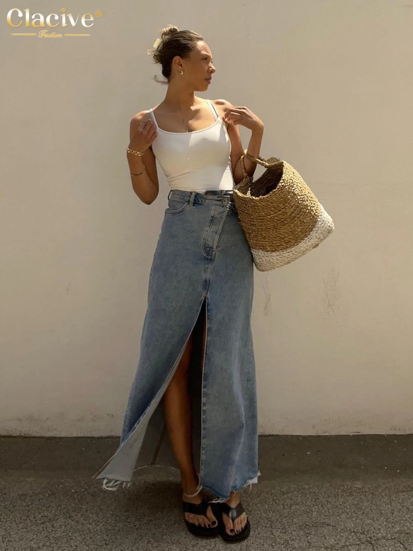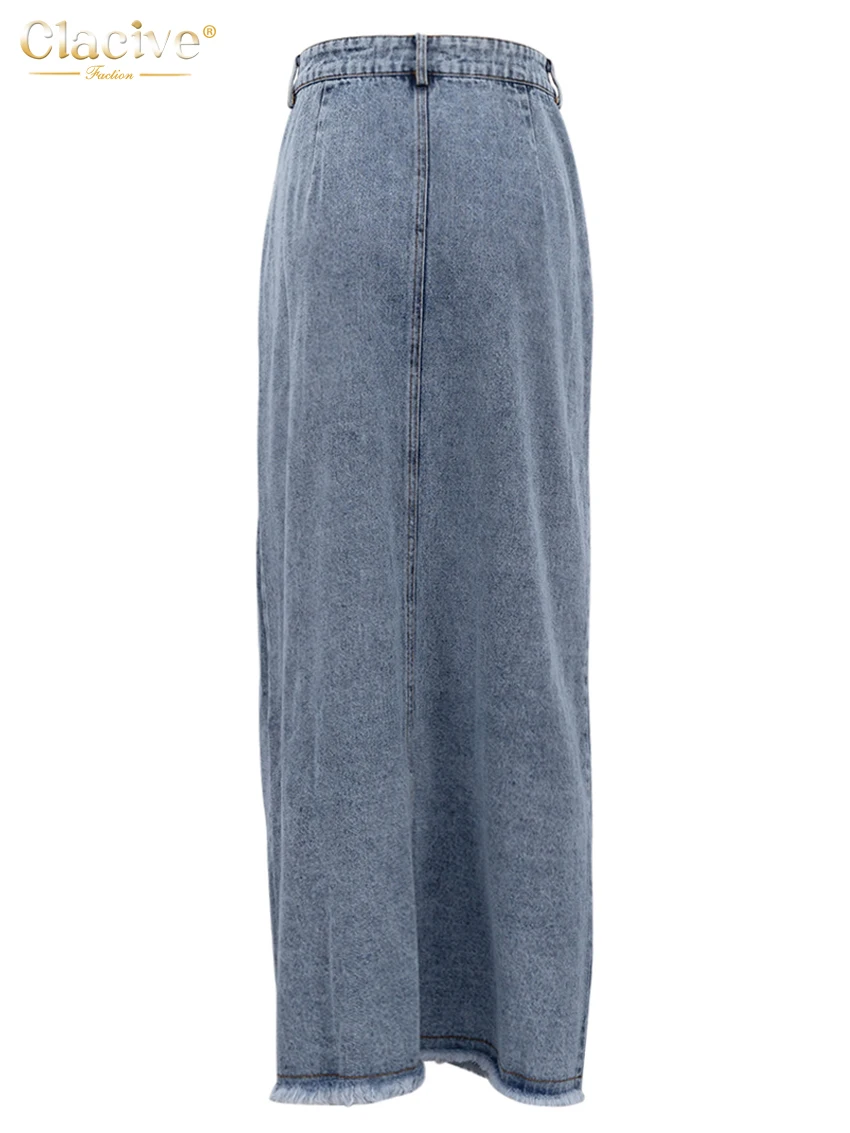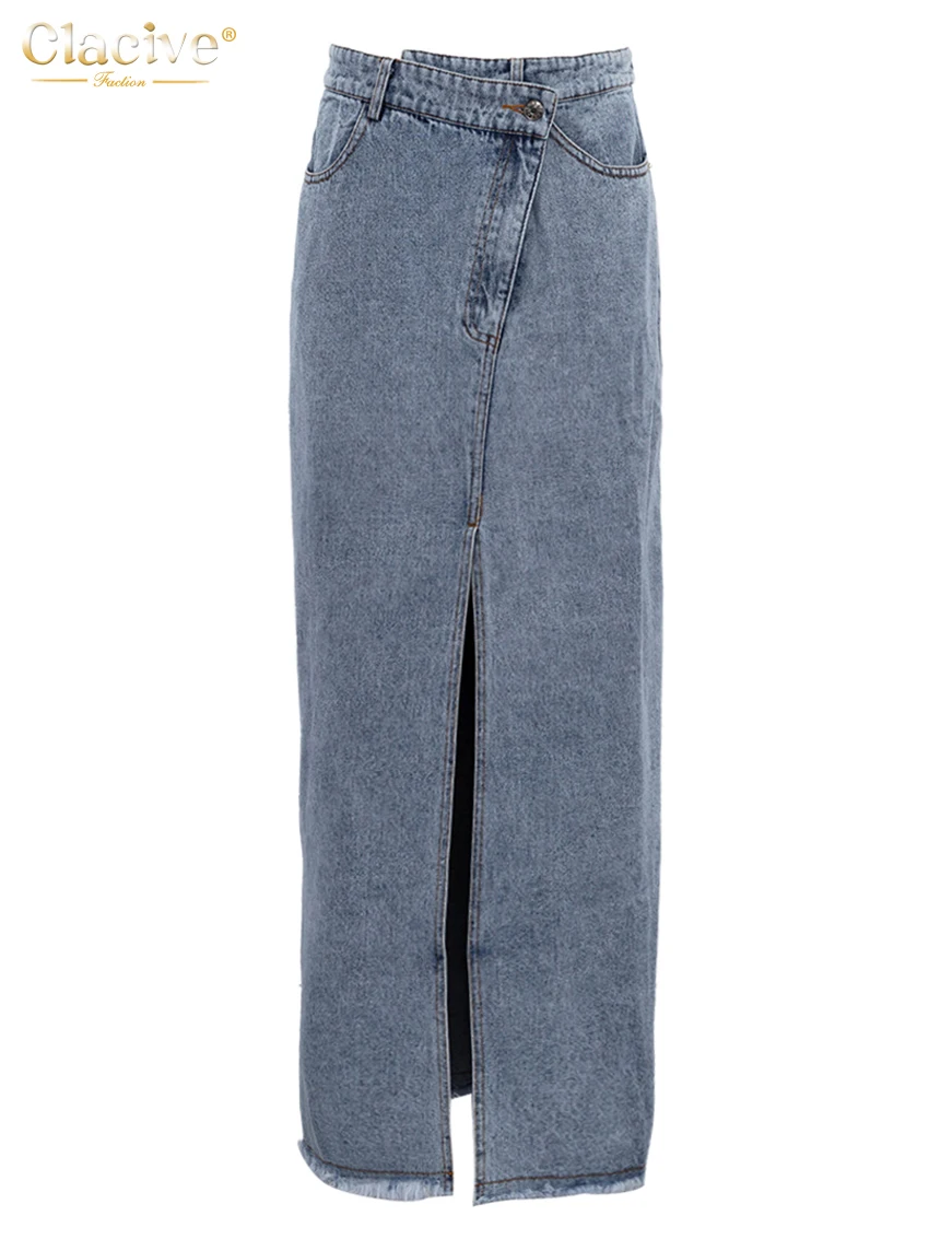 Винтажная свободная шикарная юбка Clacive для женщин, элегантная офисная длинная юбка с высокой талией, модная синяя джинсовая юбка, женская одежда