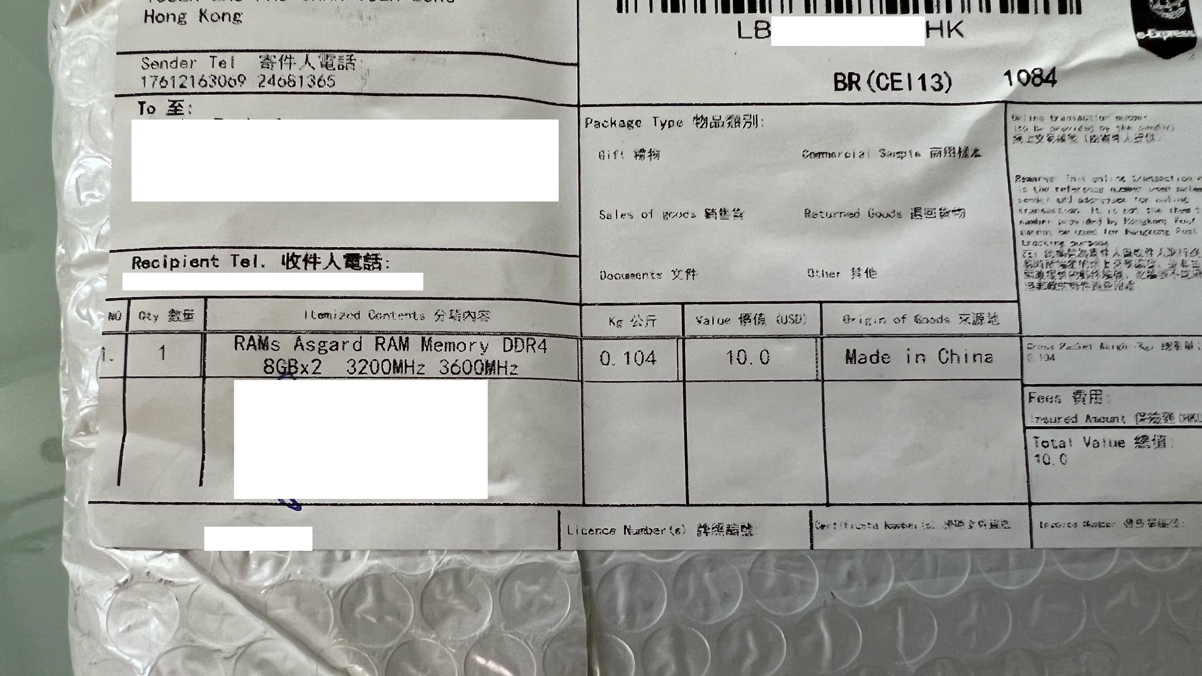 1-кусочки красивые. 2-продавец декларировал товар на сумму 10 долларов. 3-на упаковке сообщается точно, что это такое: Rams Asgard RAM memory DDR4 8gbx2 32000MHz. 4-при использовании с Ryzen 5 5600 на гигабайтном b550m Aorus elite он нормально работает на 3200 МГц, активируя XMP.Leandro G. 8 августа 2023