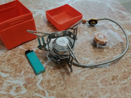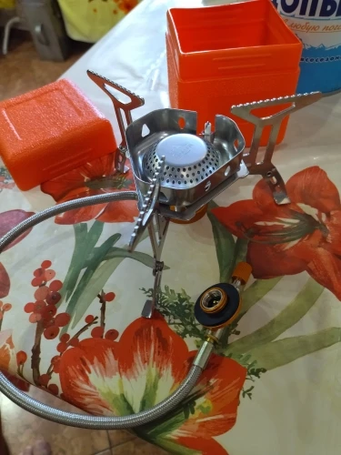 Шло долго с 18.07 по 25.08, продавец отправил на 3ий день, хотя с его магазина было заказано еще три товара, они пришли за две недели. Товар соответствует описанию, все целое, адаптер заказанный в комплекте на месте. Тестирование с посудой из этого же магазина, кастрюльку 1.3 литра скипитила за 6 минут, не на максималках, при отсутствии ветра и температурой за бортом 20°С. Одно настораживает, пьезо поджиг раскаляется на конце, на сколько его хватит покажет время.