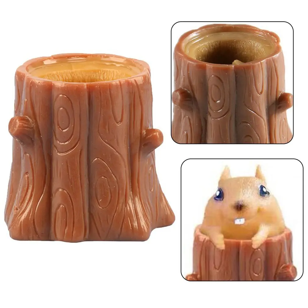 Эспандер резиновый в виде белки, детская игрушка, снижение напряжения, дерево, пень из дуба, симпатичный миниатюрный телескопический держатель для ручек, подарки для игр