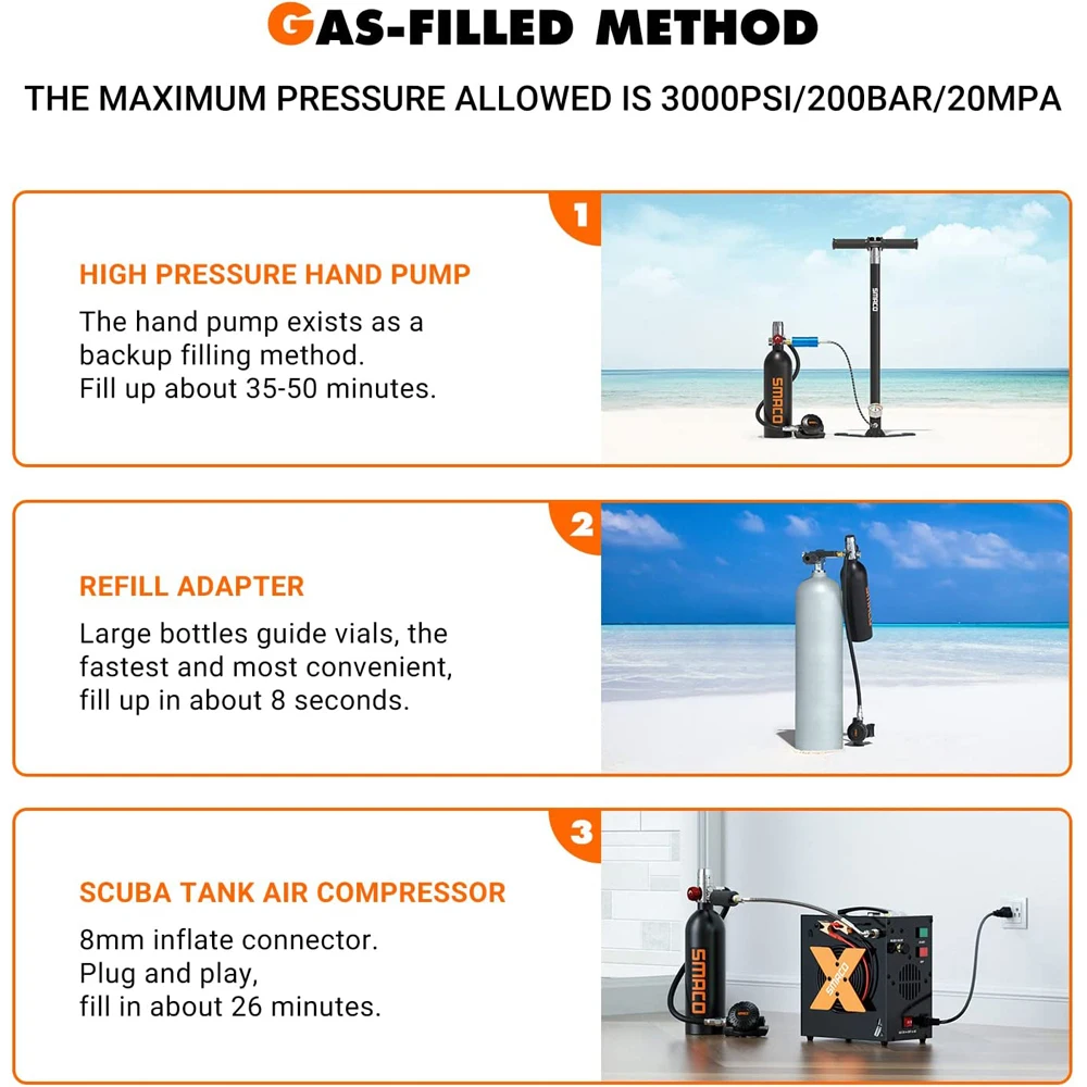 Smaco Мини-резервуар для подводного плавания кислородный баллон резервуар для подводного исследования экстренное спасение профессиональное оборудование для дайвинга/Сноркелинг